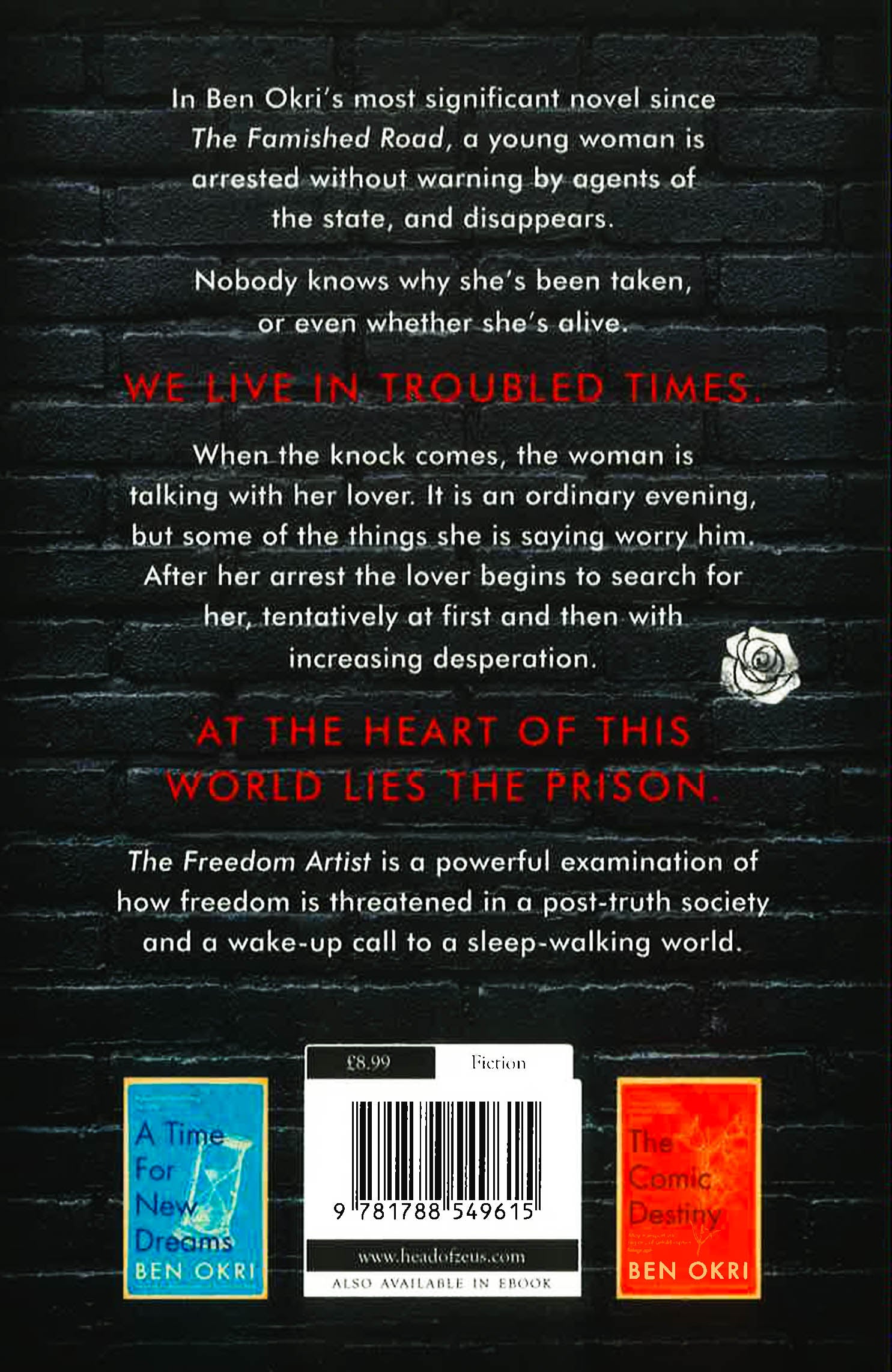 One of 2019's most anticipated novels in THE TIMES, IRISH TIMES and GUARDIAN. 'Where fiction's master of enchantments stares down a real horror, and without blinking or flinching, produces a work of beauty, grace and uncommon power' MARLON JAMES, winner of the Man Booker Prize 2015. An impassioned plea for freedom and justice, set in a world uncomfortably like our own, by the Man Booker-winner Ben Okri. In a world uncomfortably like our own, a young woman called Amalantis is arrested for asking a question. Her question is this: Who is the Prisoner? When Amalantis disappears, her lover Karnak goes looking for her. He searches desperately at first, then with a growing realization. To find Amalantis, he must first understand the meaning of her question. Karnak's search leads him into a terrifying world of lies, oppression and fear at the heart of which lies the Prison. Then Karnak discovers that he is not the only one looking for the truth. The Freedom Artist is an impassioned plea for justice and a penetrating examination of how freedom is threatened in a post-truth society. In Ben Okri's most significant novel since the Booker Prize-winning The Famished Road, he delivers a powerful and haunting call to arms. 'Ben Okri is that rare thing, a literary and social visionary, a writer for whom all three - literature, culture and vision - are profoundly interwoven' ALI SMITH.