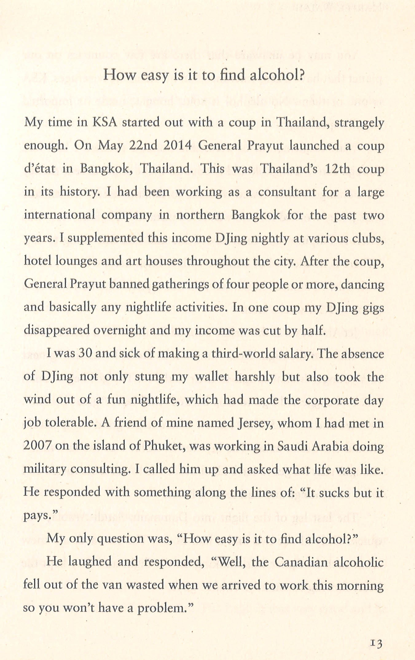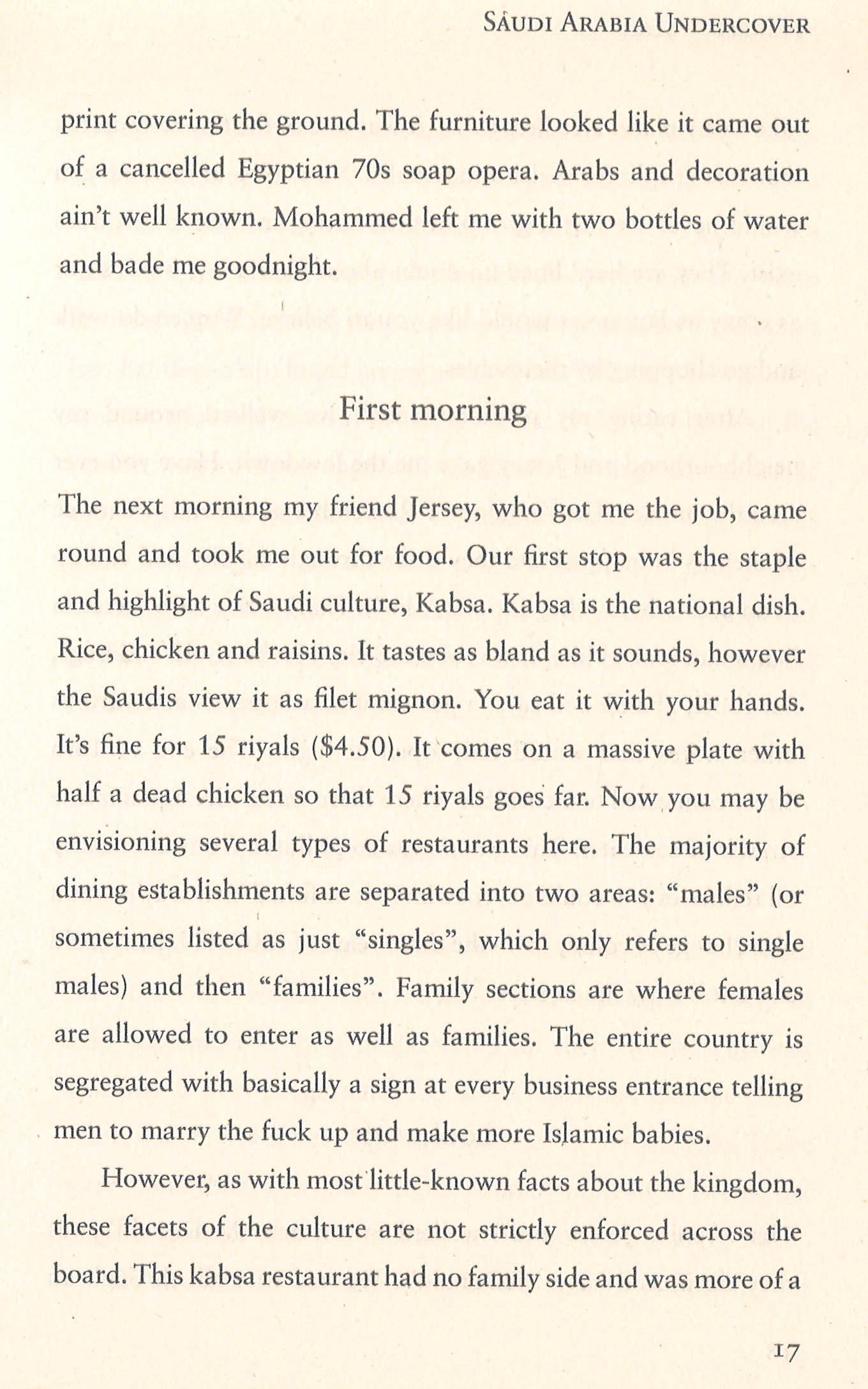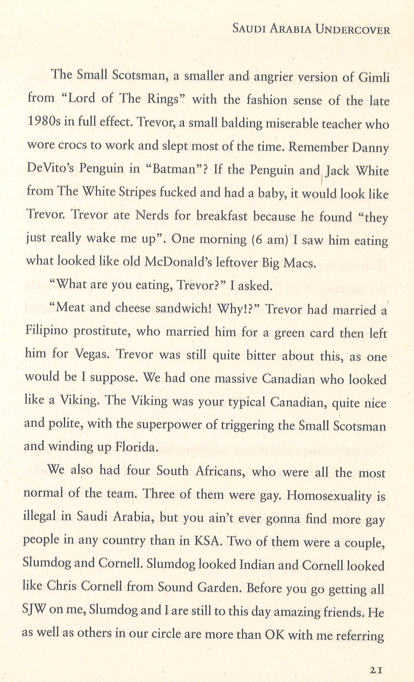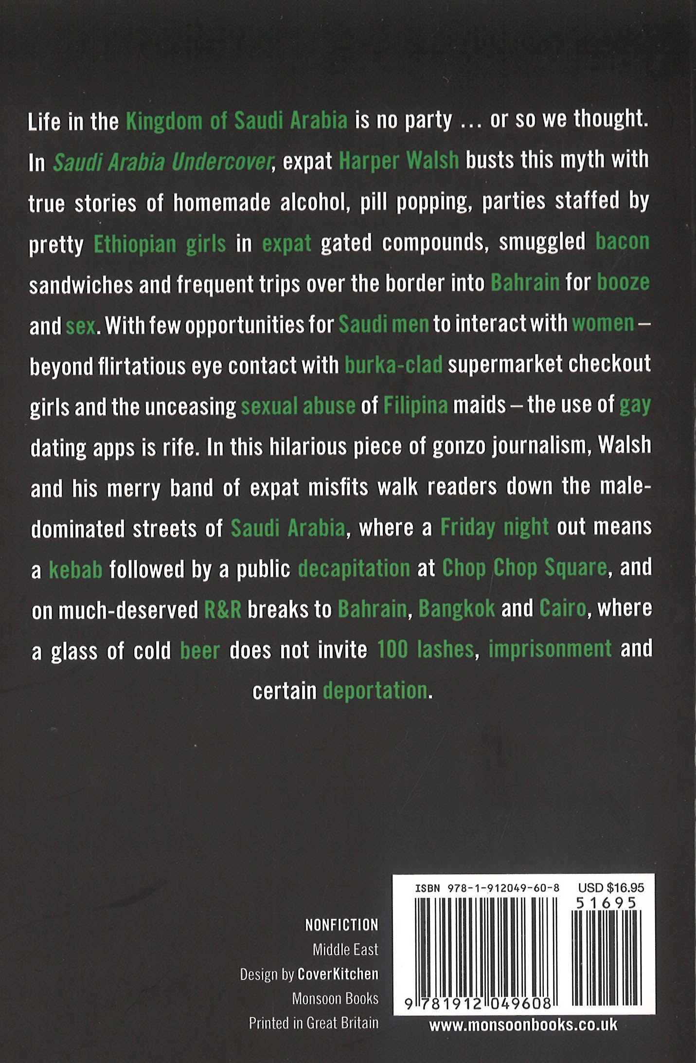 Life in the Kingdom of Saudi Arabia is no party … or so we thought. In Saudi Arabia Undercover, expat Harper Walsh busts this myth with true stories of homemade alcohol, pill popping, parties staffed by pretty Ethiopian girls in expat gated compounds, smuggled bacon sandwiches and frequent trips over the border into Bahrain for booze and sex.