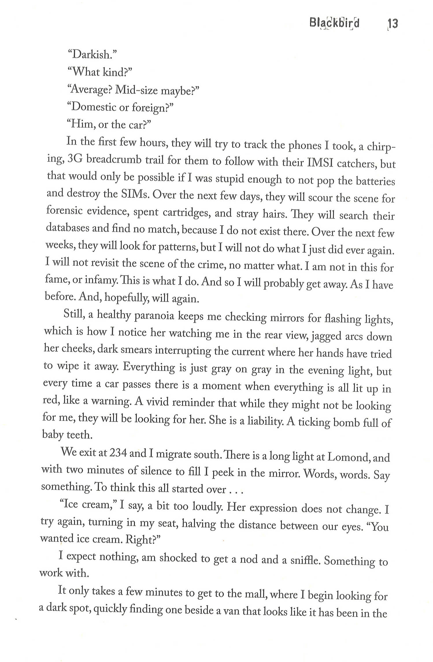 A cold-blooded killer-for-hire, Edison North drifts across America from city to city, crime scene to crime scene, leaving behind a world in flames. But during a seemingly random stop at a fast food restaurant, Edison meets Christian, a young girl who mirrors his own sense of isolation and stink of "other." Though it's been a long time since he felt anything resembling a human connection, something about this desperately lonely child calls to him like a fallen nestling. Edison feels certain she deserves better. And while he is not convinced that he can give her that, he can teach her to fly on her own. So he takes her.