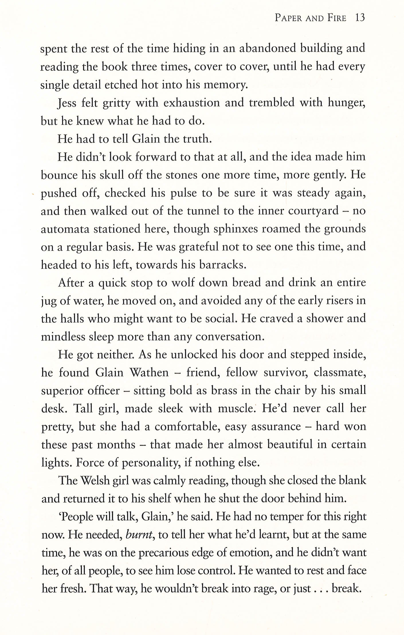 In Ink and Bone, Jess Brightwell learned that the shining light of the Great Library of Alexandria was an illusion ...one that hides great darkness. Now, barred from his goal of becoming a Scholar, he's determined to make his career as a High Garda soldier a success. But news that a friend may be imprisoned and suffering brings Jess back with his old companions, and to a common cause: rescue. Failure means death. Success means that their uneasy truce with the Archivist becomes open war. But they have a secret that may shake the very foundations of the Library ...if they dare to use it. Paper and Fire takes us on a breathless journey from battlefields to ancient tombs, from Alexandria to Rome, and to the edge of a world that must change to survive.