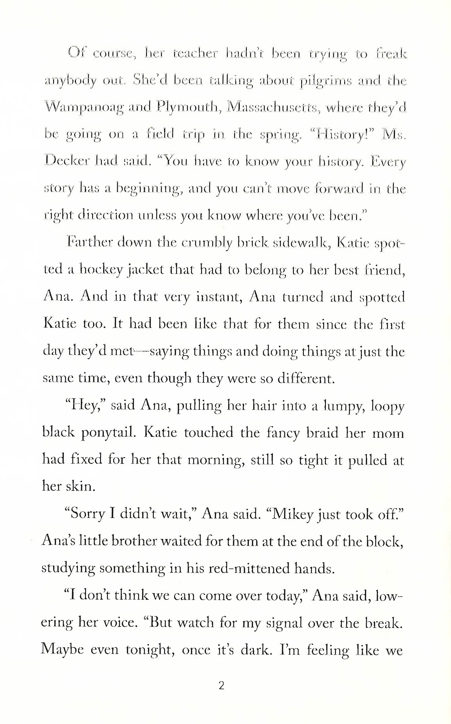 Katie and Ana are the kind of friends who share everything with each other. But there are some things you can’t even share with your best friend. Katie has always known she was adopted, but recently she’s been wondering about her birth parents and her birthplace. She worries that saying this out loud - even to her best friend - could mess up the perfect family she has now. Ana’s family has been falling apart ever since her dad left, and it’s up to her to hold it together. But Ana fears no matter how hard she tries, her family may never be whole again. At a time when they need each other the most, the links between the girls are beginning to break. Before they lose each other, they must work through the tangles of secrets to the shining truth underneath: friendship, just like family, is worth fighting for.