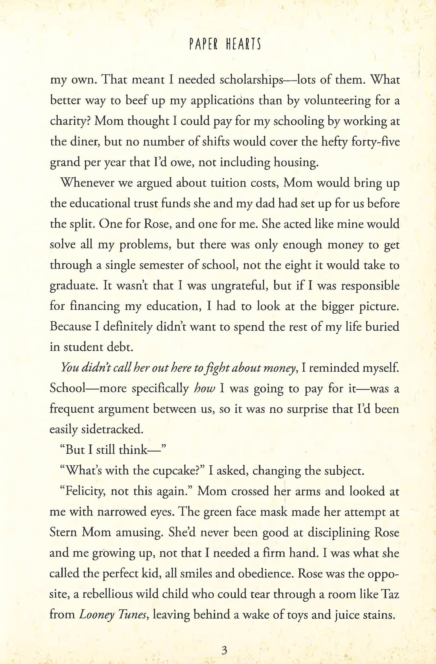 Felicity has her entire future planned. Ever since her older sister ran away, she's had the full weight of her mother's expectations on her shoulders. So she works hard to get straight As and save for college.
