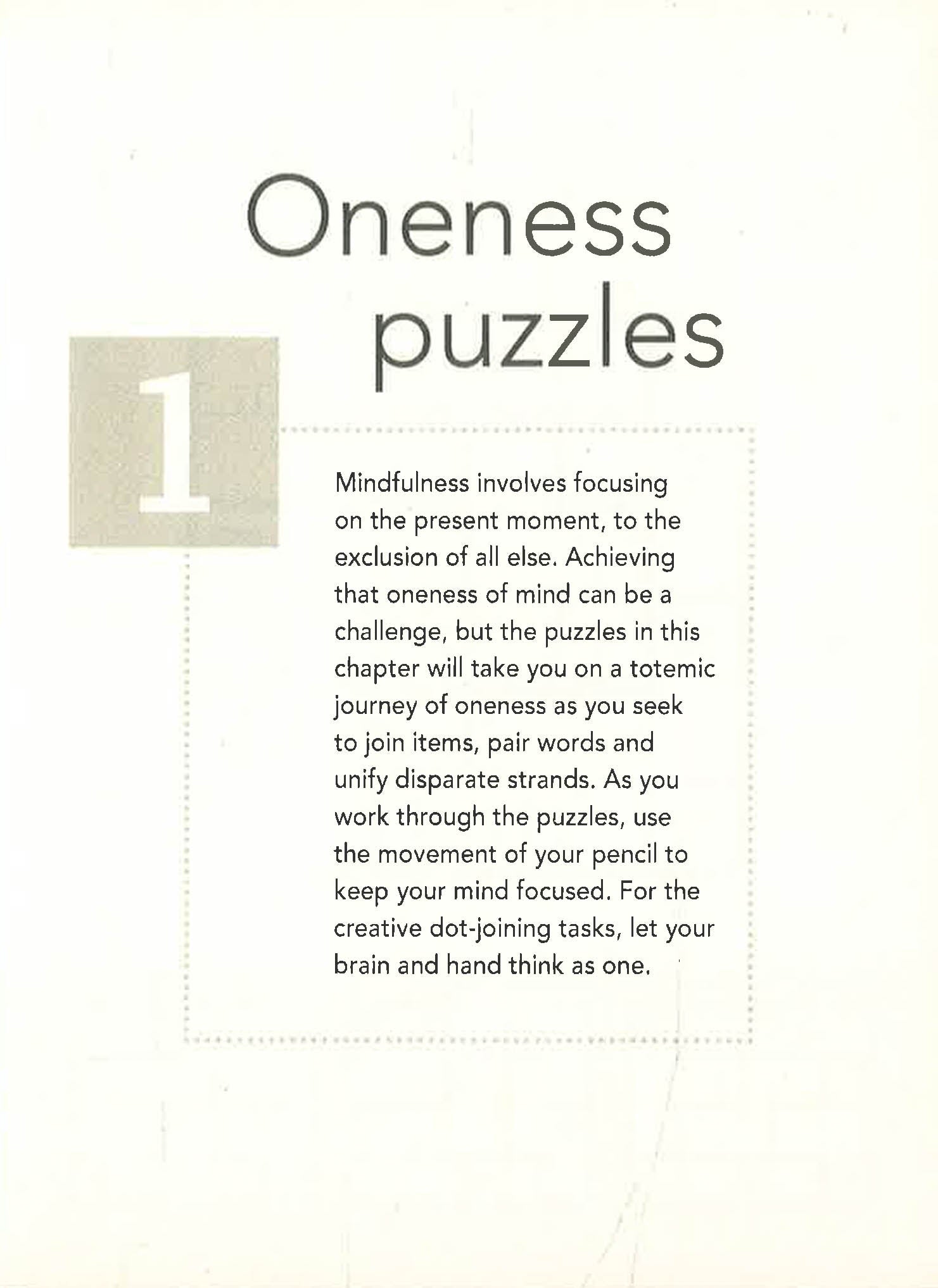 The puzzles in this book encourage you to develop mindfulness skills to help relieve the stresses of modern-day living. Each one is designed to channel your mind away from distractions and to focus on the here and now. Work your way through puzzles that include drawing fences, finding hidden words, matching shadows and linking shapes to improve your awareness, instinct and creativity.