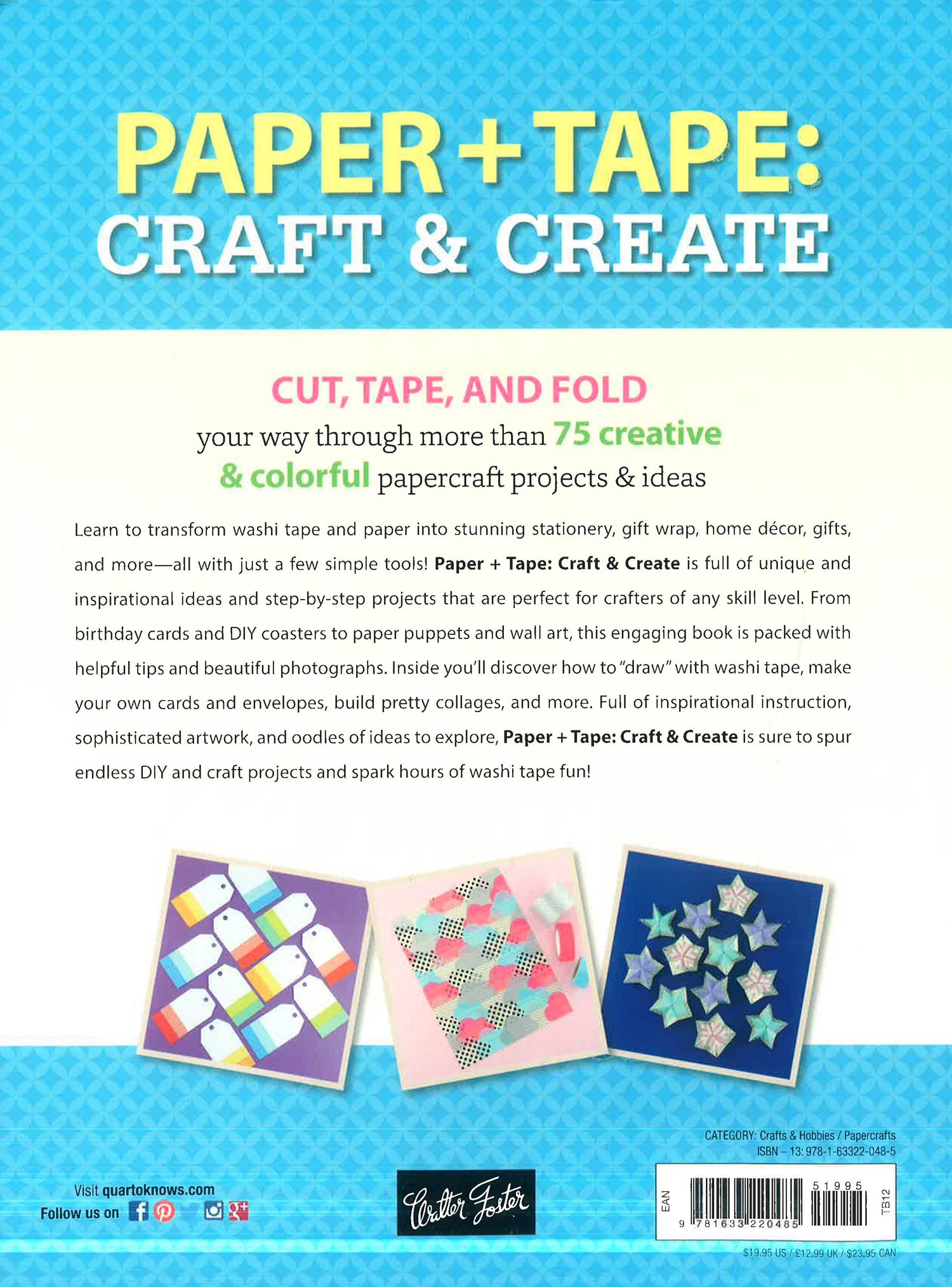 Paper & Tape: Craft & Create is full of unique and inspirational ideas and step-by-step projects that are perfect for washi tape crafters of any skill level. From birthday cards and DIY coasters to paper puppets and wall art, this engaging book is packed with helpful tips and beautiful photographs of finished work. Inside you'll discover how to "draw" and "write" with washi tape, make your own cards and envelopes, build pretty washi tape collages, and more. This book also features "Mini Make" projects that show you how to turn five common craft materials into innovative projects using washi tape. Full of inspirational instruction, sophisticated artwork, and myriad ideas to explore and build on, Paper & Tape: Craft & Create is sure to spur endless DIY and craft projects and spark hours of washi tape fun!