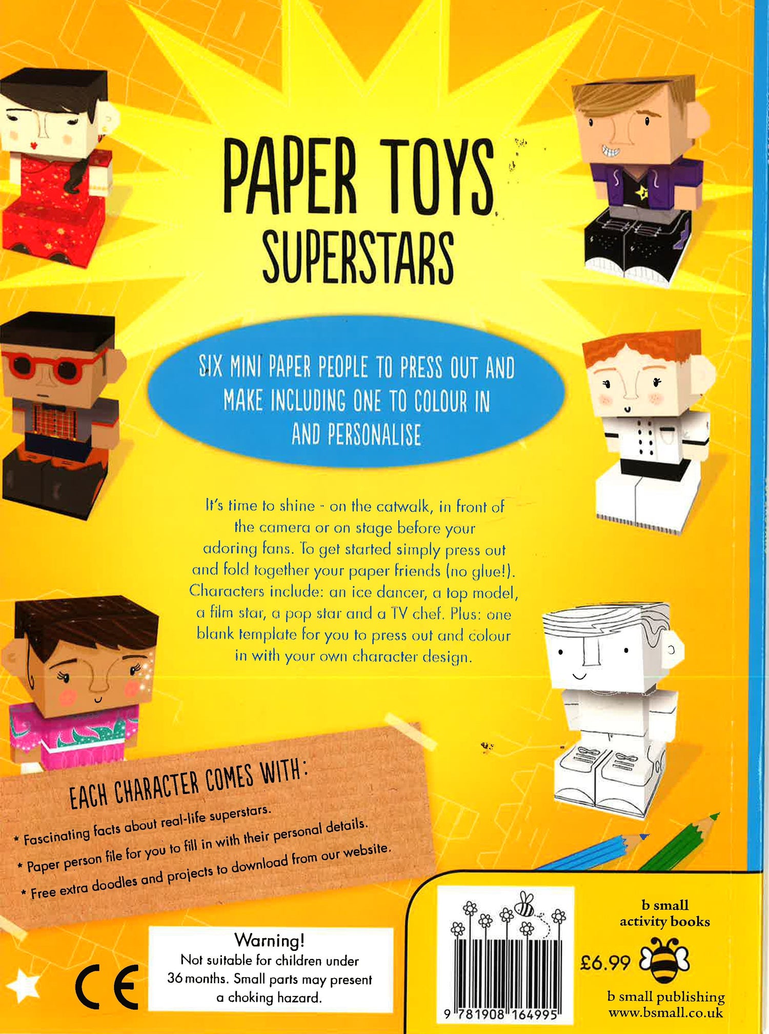 It's time to shine - on the catwalk, in front of the camera or on stage before your adoring fans. To get started simply press out and fold together your paper friends (no glue!). Characters include: an ice dancer, a top model, a film star, a pop star and a TV chef. Plus: one blank template for you to press out and colour in with your own character designs. Each character comes with fascinating facts about real-life superstars, paper person file for you to fill in with their personal details and free, extra doodles and projects to download from the b small website. (Age Range 4-7)