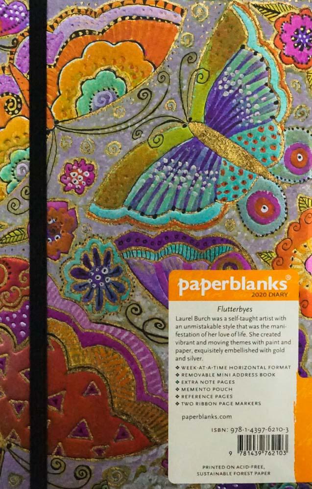 Laurel Burch was a self-taught artist who relied on her intuition and passion, speaking from the heart with an unmistakable style that was the manifestation of her love of life and strong imaginative nature. Based on Laurel Burchs original Imagine butterflies image, Paperblanks Flutterbyes 2020 12-Month Diary matches any joyful lifestyle.