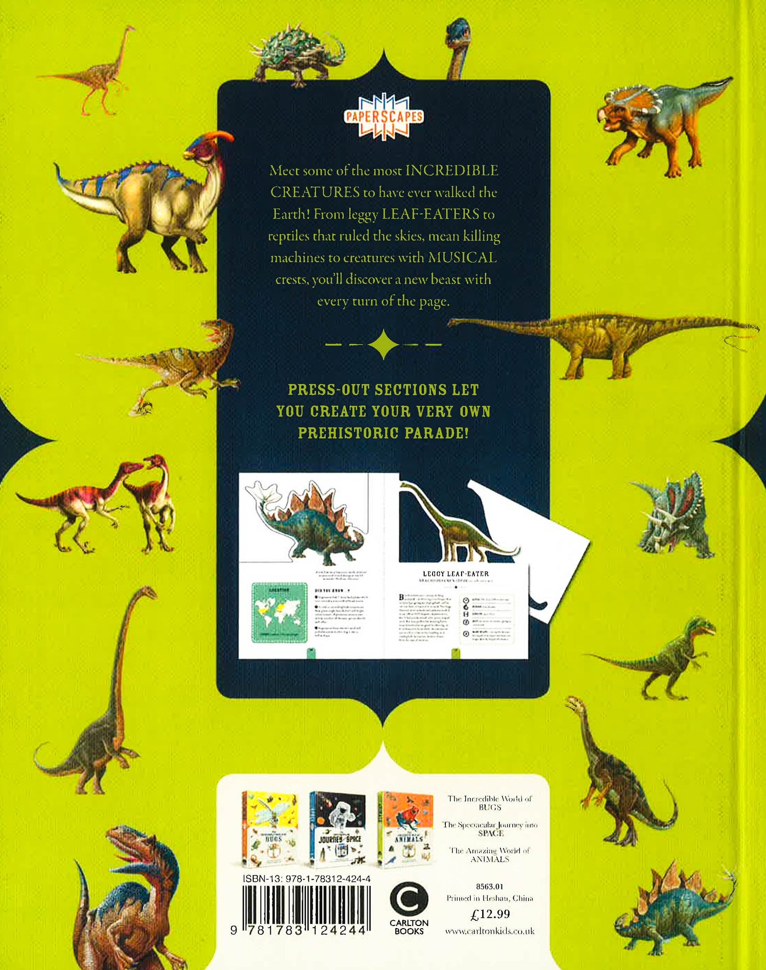 Meet the world's most amazing dinosaurs in this strikingly illustrated book with press-out die-cut pages which reveal a parade of prehistoric predators. The Fearsome World of Dinosaurs takes a look at some of these prehistoric beasts. The unique die-cut format lets the dinos leap off the page, forming a parade of the biggest, boldest and most fascinating of these incredible creatures from the past. Each dinosaur is presented with information about their appearance, characteristics, key facts and the meaning behind their names. From gigantic herbivores to armour-plated tanks, there's a new dinosaur to meet with every turn of the page.
