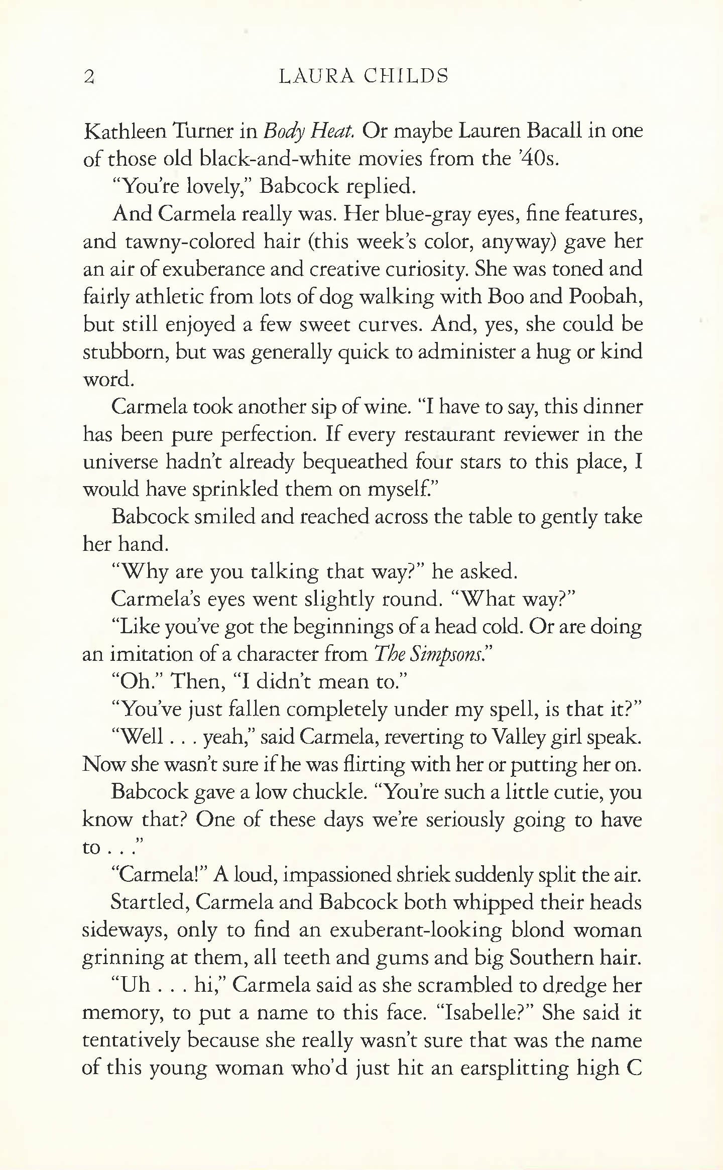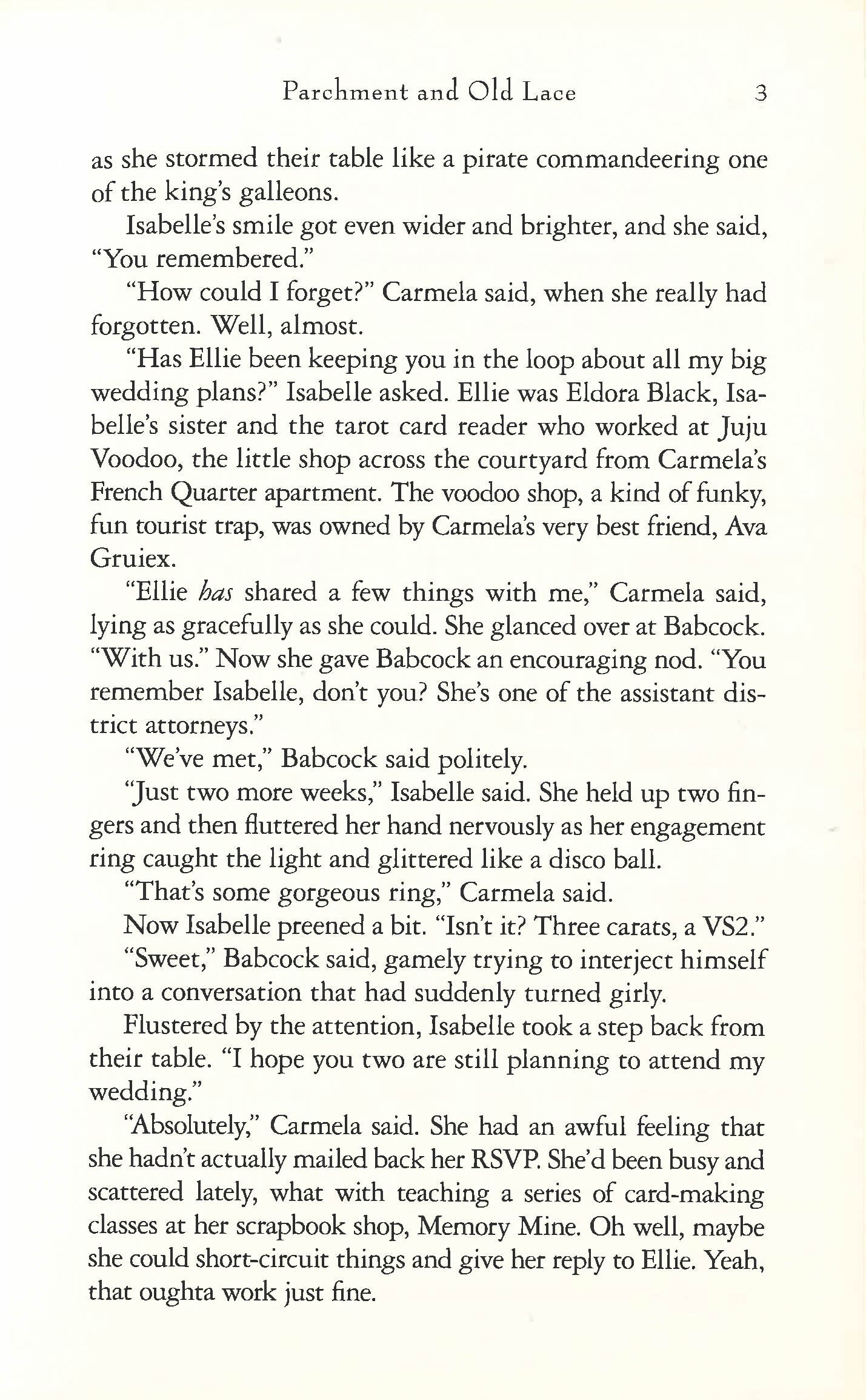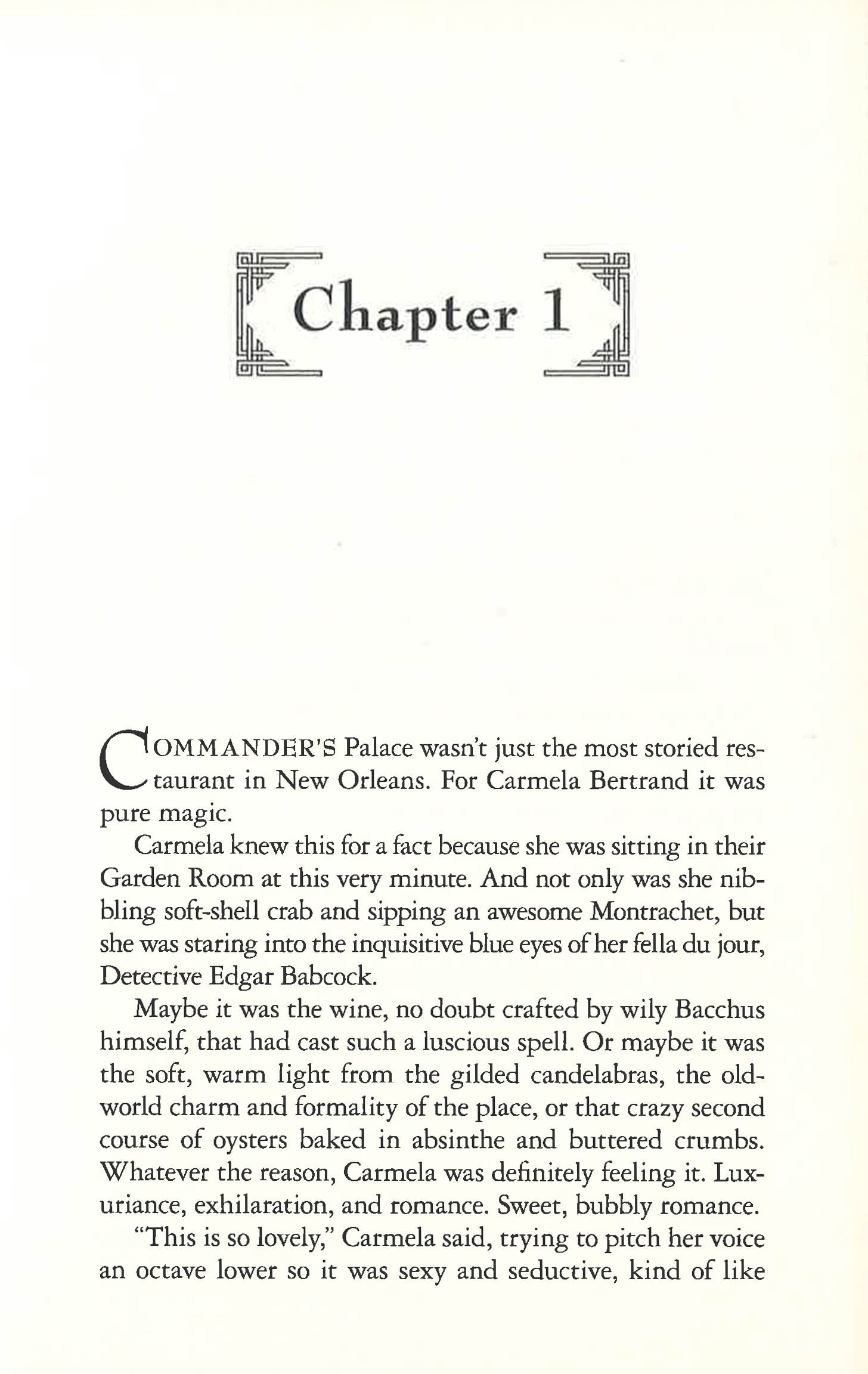 Carmela couldn t imagine a finer evening than dinner at Commander s Palace with her beau, Detective Edgar Babcock. The food and the company are equally divine with the exception of Isabelle Black stopping by to brag about her upcoming wedding. Resuming the romance with a walk in the evening air, the couple is interrupted once again this time by a terrifying scream from inside the cemetery.