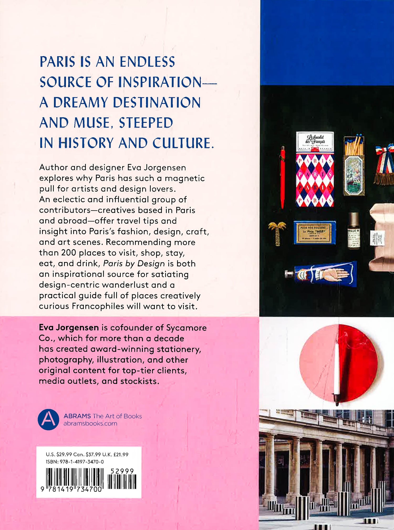Paris by Design is the definitive Paris book for the design-savvy traveler and creatively curious Francophile. With a combination of interviews, profiles, essays, tips, and lists, author and designer Eva Jorgensen explores why Paris has such a magnetic pull for artists and design lovers, by introducing us to some of the city’s most fascinating residents and frequent visitors. Jorgensen has wrangled an eclectic and exciting group of contributors―creatives based in Paris and abroad―who offer travel tips and insight into Paris’s fashion, design, craft, and art scenes. Recommending more than 200 places to visit, shop, stay, eat, and drink, this richly illustrated book is both an inspirational source for satiating design-centric wanderlust and a practical guide full of places creatives will want to visit when they take a trip.