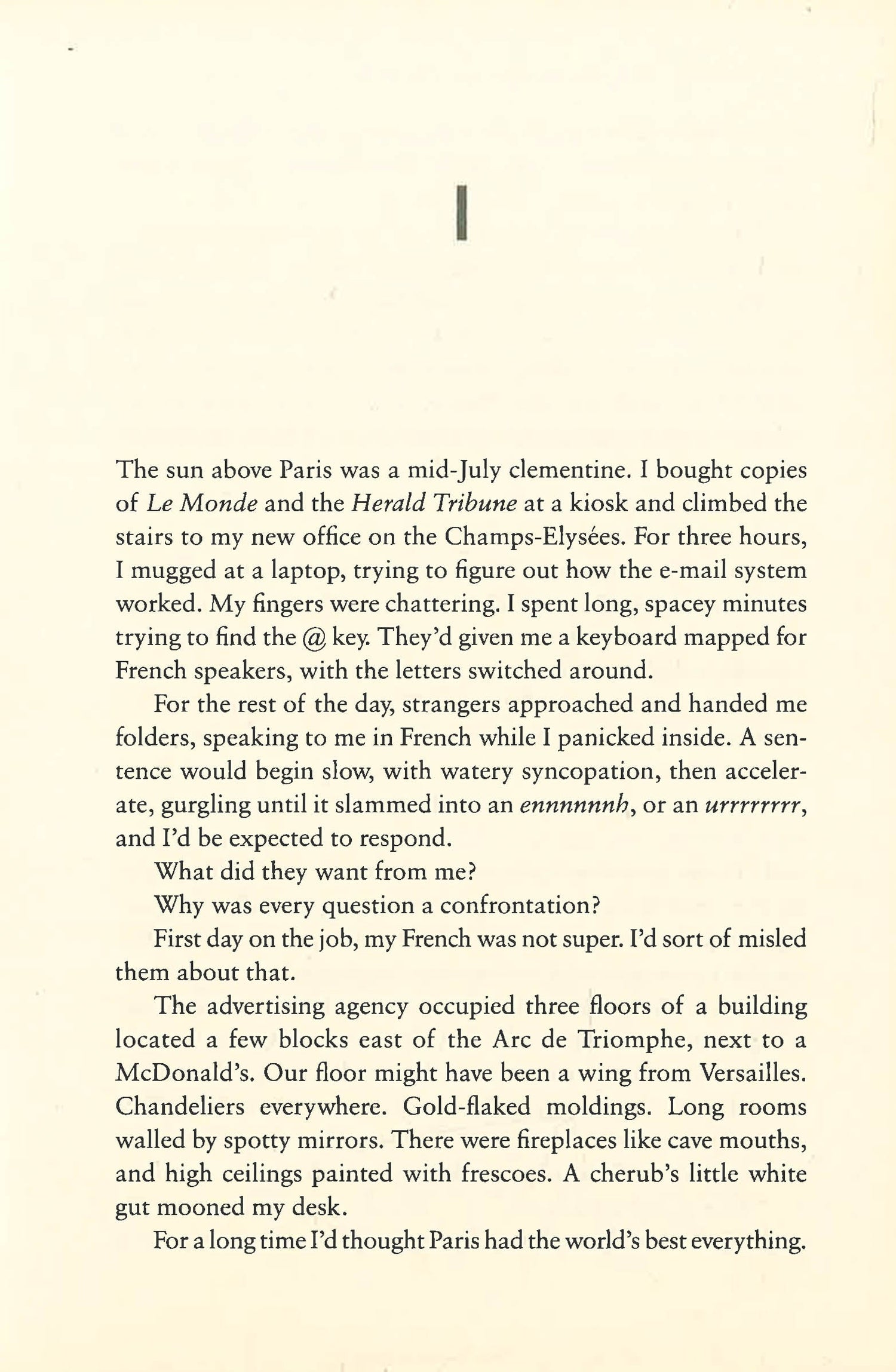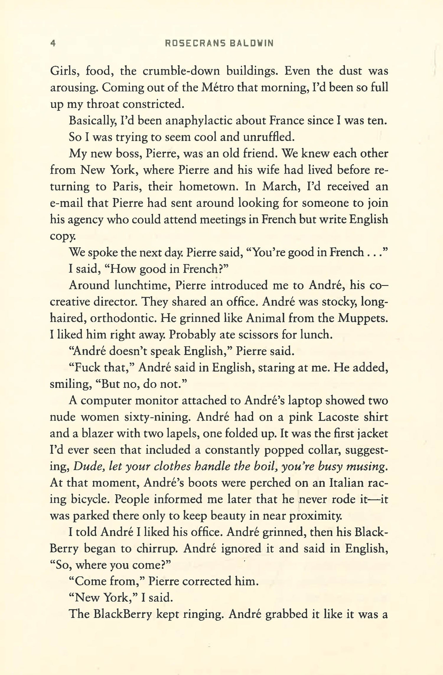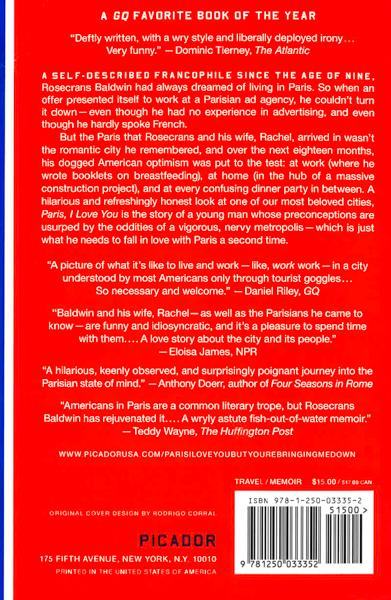 Rosecrans Baldwin had always dreamed of living in Paris, ever since vacationing there when he was nine. So he couldn't refuse an offer to work at a Parisian ad agency - even though he had no experience in advertising and hardly spoke French. But the Paris that Rosecrans and his wife, Rachel, arrived in wasn't the romantic city he remembered, and over the next eighteen months, his dogged American optimism was put to the test: at work (where he wrote booklets on breastfeeding), at home (in the hub of a massive construction project), and at every confusing dinner party in between. A hilarious and refreshingly honest take on life in one of the world's most beloved cities, Paris, I Love You is a book about a young man whose preconceptions are usurped by the oddities of a vigorous, nervy metropolis - which is just what he needs to fall in love with Paris a second time.