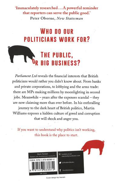 Eye-popping analysis of politicians' finances... a ground-breaking study... a fascinating and important work.' Sunday Times 'Immaculately researched... A powerful reminder that reporters can serve the public good... Should make journalists proud - and may even help to make the world a better place' Peter Oborne, New Statesman Who do our politicians work for? The public, or big business? If you want to understand why British politics isn't working, the first place to start is here. Parliament Ltd reveals the financial interests that British politicians would rather you didn't hear about. From banks and private corporations, to lobbying and the arms trade, there are MPs making millions by moonlighting in second jobs. Where does their loyalty belong - to us or to their paymasters? Meanwhile - years after the expenses scandal - they are now claiming more than ever before. In his enthralling journey to the dark heart of British politics, Martin Williams exposes a hidden, shocking culture of greed and corruption.