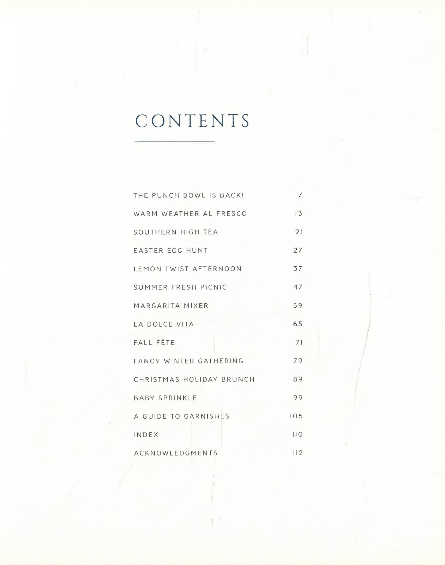Consummate hostess Kimberly Whitman introduces the lively, rich history of the punch bowl, from India to England & Europe to the American South and beyond. She creates a dozen festive party ideas organized around a punch bowl: an Easter Egg Hunt, a classic Blue and White Party, a Bar Cart Party, a Fall Gathering, a Holiday Breakfast Coffee, and more. Recipes for both alcoholic and nonalcoholic punches, plus recipes for what to serve with it are the center of each celebration. Kimberly’s expert hostess tips are scattered throughout. A variety of punch bowls, bases, and glasses featured in the book will send readers out shopping for their own special style.