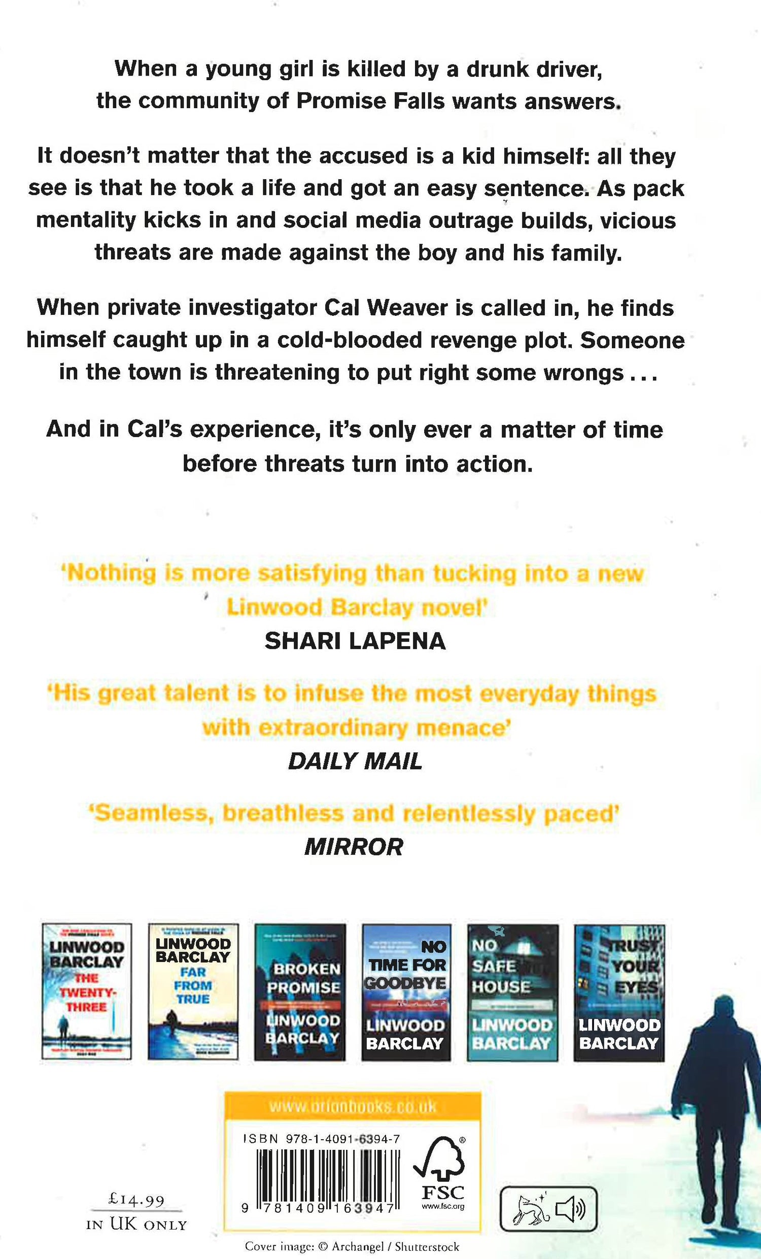 A gripping thriller packed with scandal in a small town, from the master of the twist you never saw coming - international bestseller, Linwood Barclay. When a young girl from Promise Falls is killed by a drunk driver, the community wants answers. It doesn't matter that the accused is a kid himself: all they see is that he took a life and got an easy sentence. As pack mentality kicks in and social media outrage builds, vicious threats are made against the boy and his family. When Cal Weaver is called in to investigate, he finds himself caught up in a cold-blooded revenge plot. Someone in the town is threatening to put right some wrongs...And in Cal's experience, it's only ever a matter of time before threats turn into action.