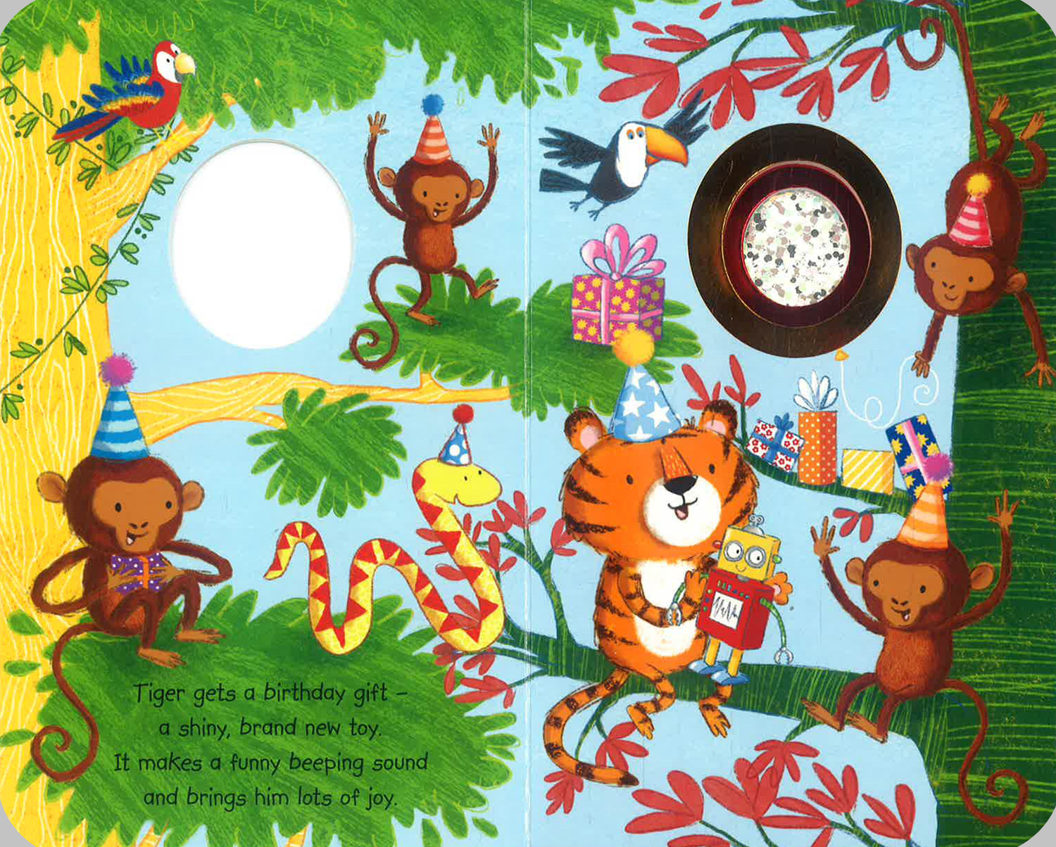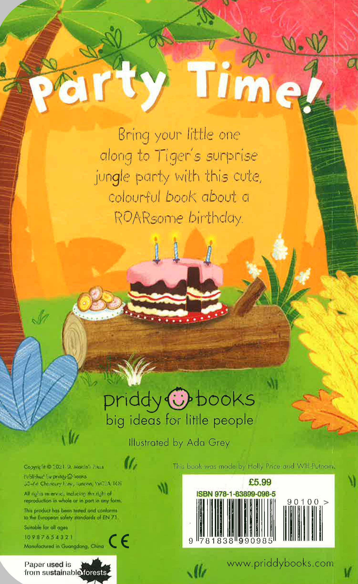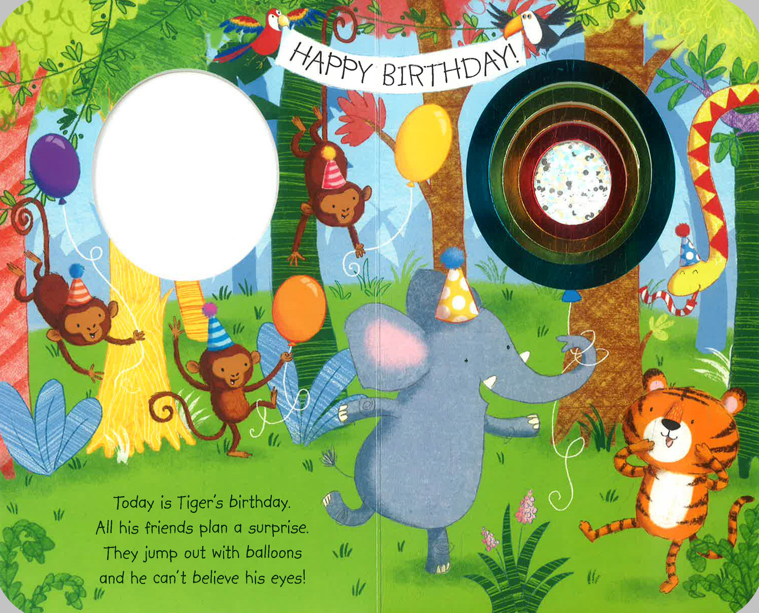 Roger Priddy's Shiny Shapes: Party Time is the perfect birthday-themed book to share with your child. With fun rhymes to read, and adorable illustrations, this new addition to the popular Shiny Shapes series sees Tiger celebrate his birthday with his best jungle friends. He opens his birthday gifts, eats lots of food, blows out the candles on his cake, and has a boogie at the disco! There are balloon-shaped holes in every page, edged with shimmery, brightly coloured foil, leading to a surprise at the end of the story!