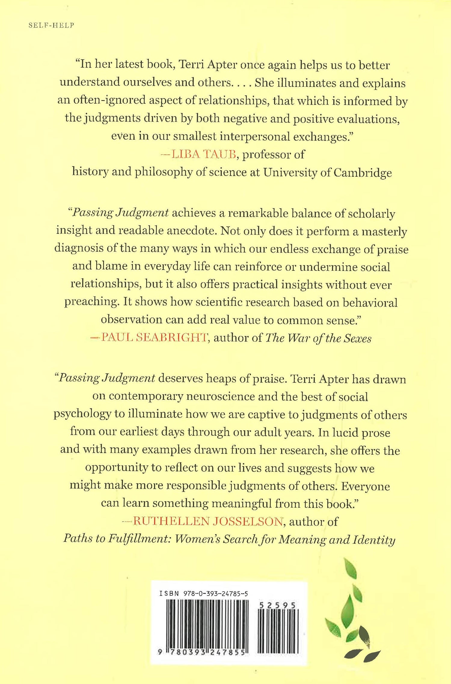 Apter reveals how interactions between parents and children, within couples, and among friends and colleagues are permeated with praise and blame that range far beyond specific compliments and accusations. Drawing on three decades of research, Apter gives us tools to learn about our personal needs, goals and values; to manage our biases; to tolerate others’ views; and to make sense of our most powerful, and often confusing, responses to ourselves and to others.