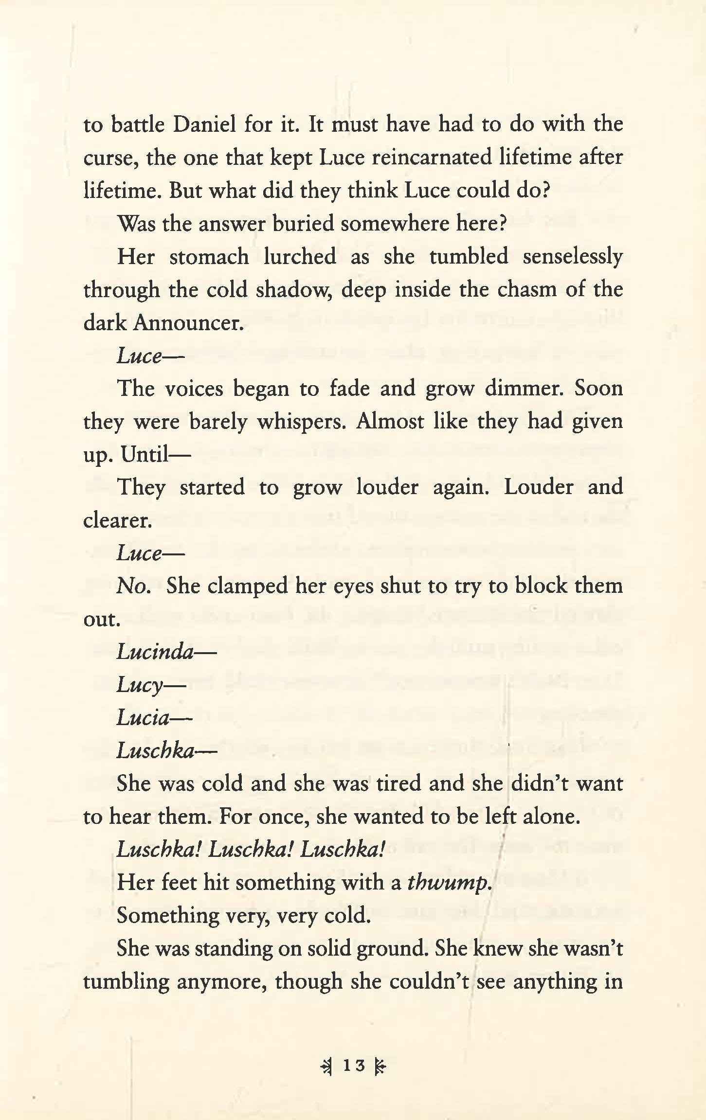 And she has. Over and over again. Throughout time, Luce and Daniel have found each other, only to be painfully torn apart: Luce dead, Daniel left broken and alone. But perhaps it doesn't need to be that way. . . .