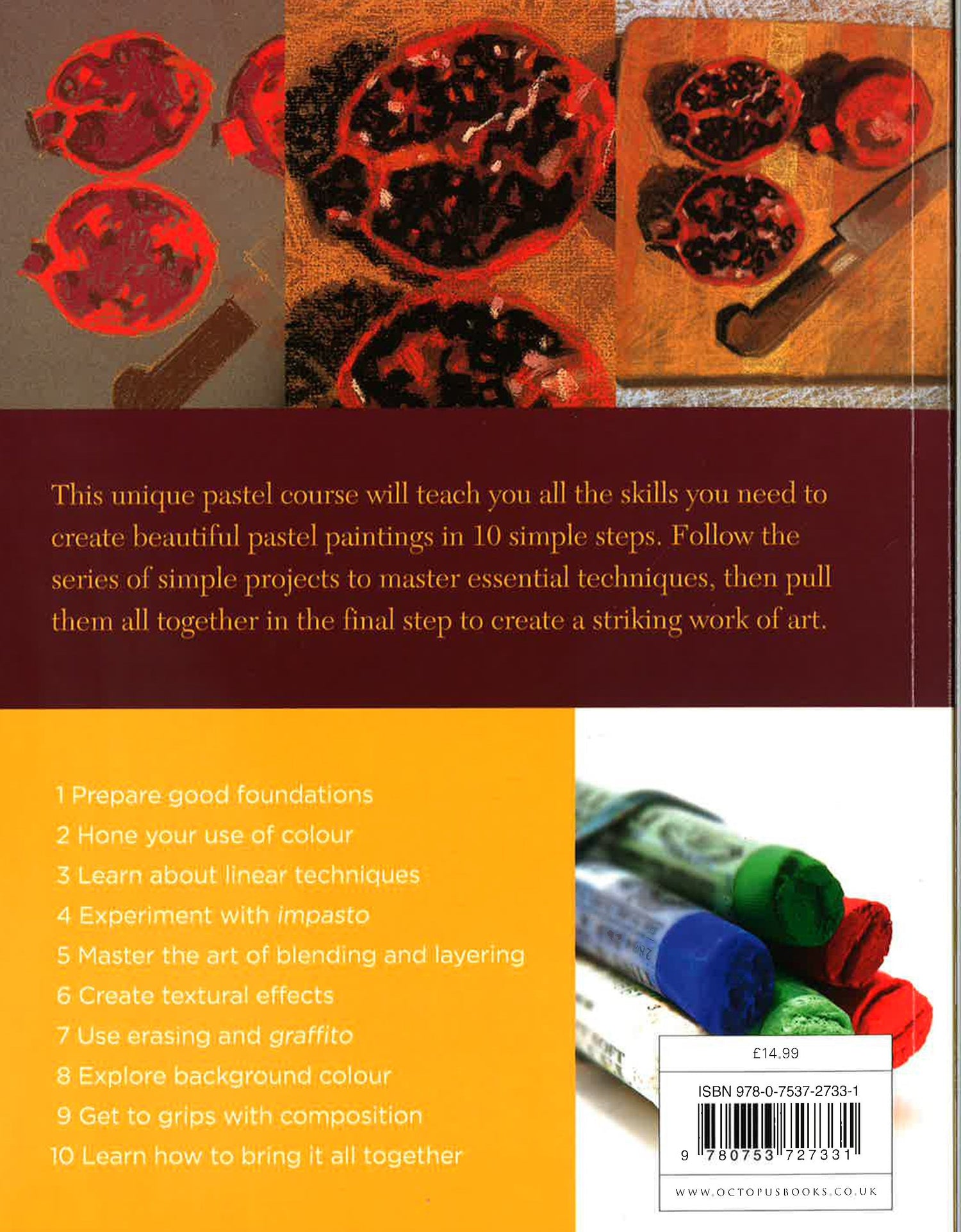 Whether you're a complete beginner or keen to improve your skills, Pastels in 10 Steps is sure to help you on your way to becoming a true artist. Spanning various elements of this popular art form, this amazing guide will take you through all the essential techniques needed to produce fantastic artworks. Simply follow the series of below steps to master your skill, paint individual elements of a still life arrangement, then put them all together to create a beautifully composed and executed masterpiece. Steps include: 1 Prepare good foundations 2 Hone your use of colour 3 Learn about linear techniques 4 Experiment with impasto 5 Master the art of blending and layering 6 Create textural effects 7 Use erasing and graffito 8 Explore background colour 9 Get to grips with composition 10 Learn how to bring it all together