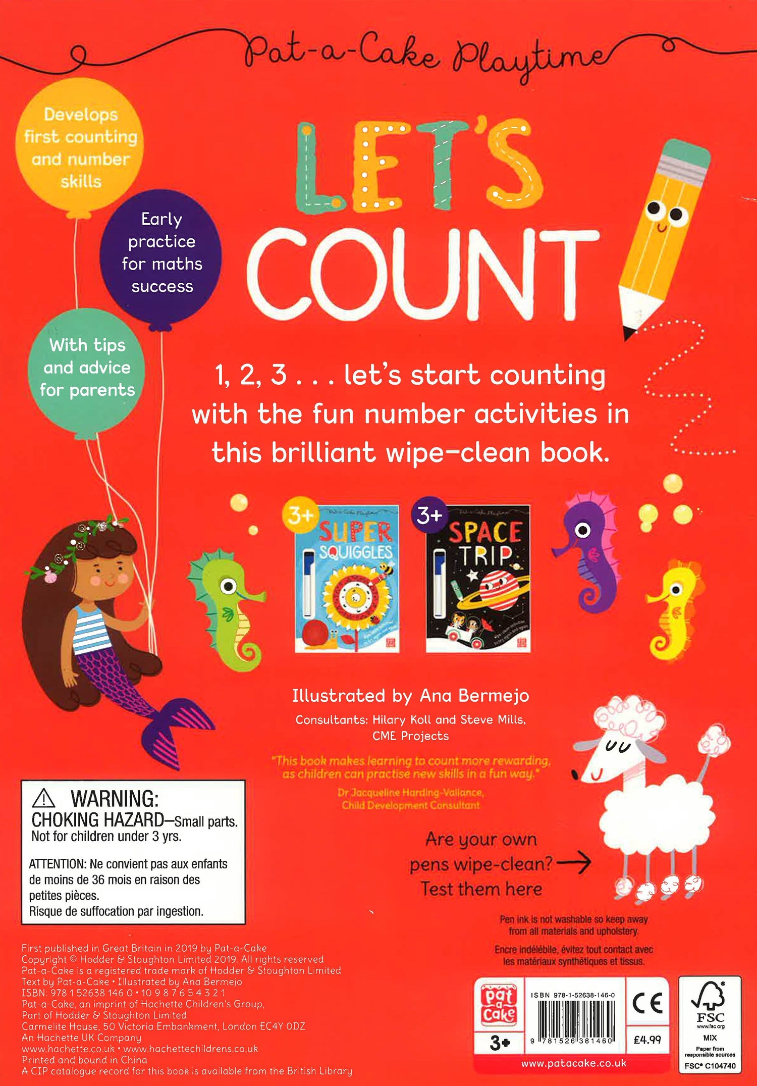 Essential, fun wipe-clean activity books to keep children busy and master key early learning skillsLet's Count is packed with counting games to play and number puzzles to solve. Children will have fun getting to grips with the pre-school skills of pen control as they learn about numbers, the ideal preparation for learning to write.The consultant-approved activities are fun to do and are combined with brilliant, engaging art that children will love.Also available: Super Squiggles, Space Trip