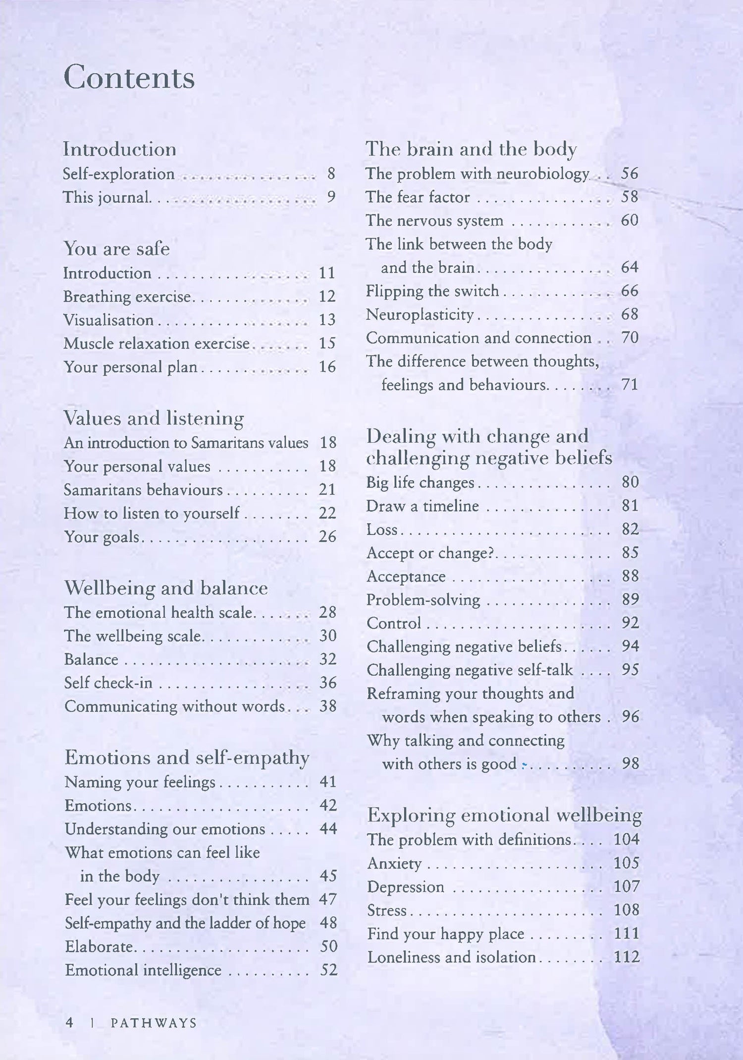 Created in collaboration with psychologists and Samaritans volunteers, Pathways: Your journey to emotional wellbeing provides practical and creative ways to promote positivity and help you find your own route through your problems.
