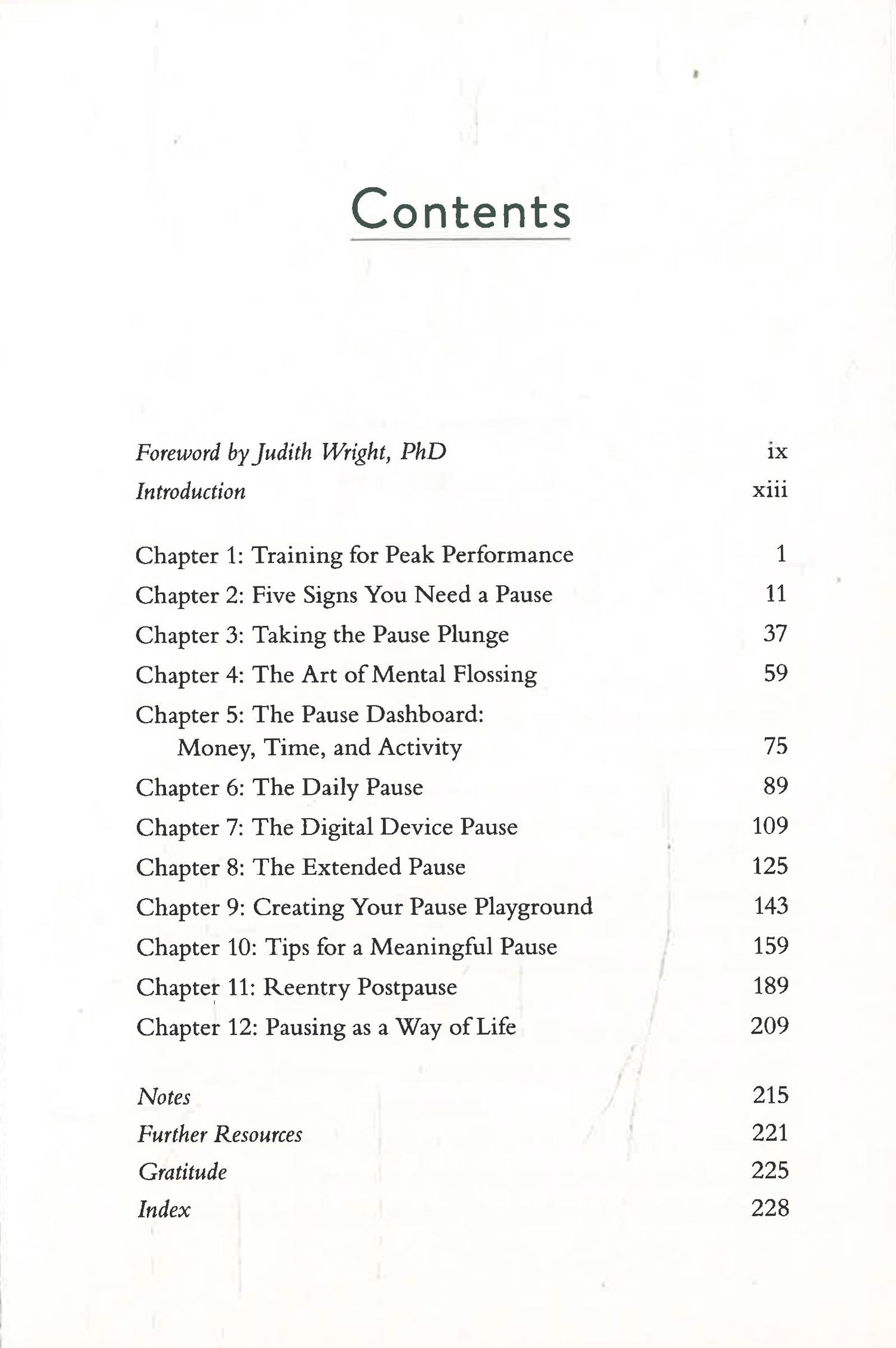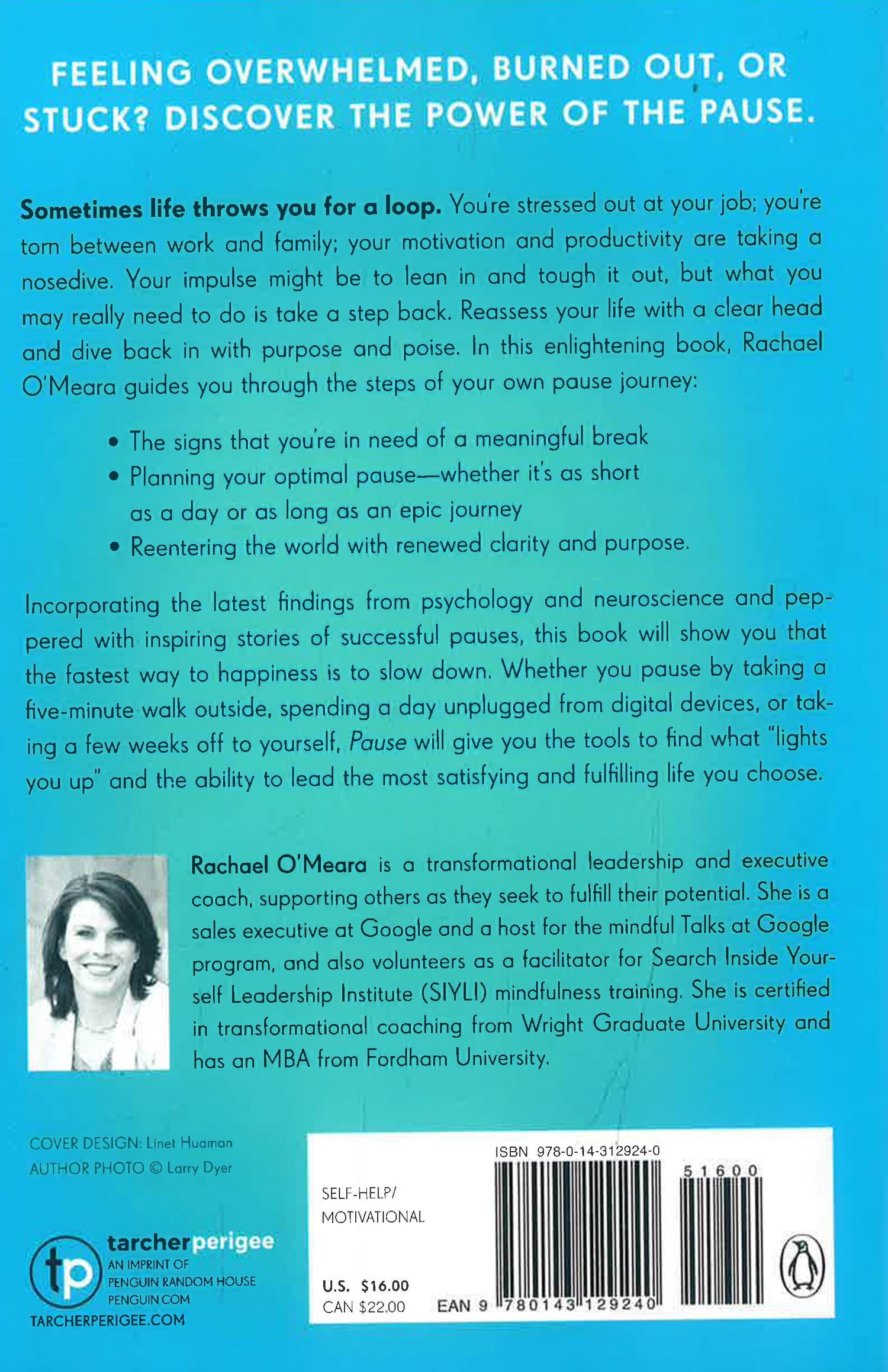 Incorporating the latest findings from psychology and neuroscience and peppered with inspiring stories of successful pauses, this book will show you that the fastest way to happiness is to slow down. Whether you pause by taking a five-minute walk outside, spending a day unplugged from digital devices, or taking a few weeks off to yourself, Pause will give you the tools to find what “lights you up” and the ability to lead the most satisfying and fulfilling life you choose.
