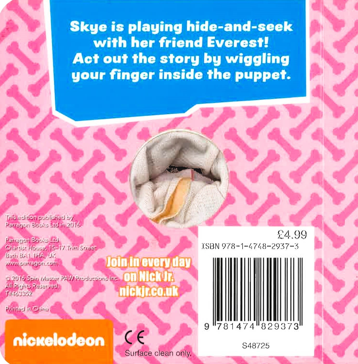 Join the PAW Patrol for this adorable finger puppet book, Fly, Skye! Skye is playing hide-and-seek with her friend Everest! Follow Skye and Everest all around Adventure Bay as they play their fun game. Wiggle the Skye finger puppet to act out the cute rhyming story.