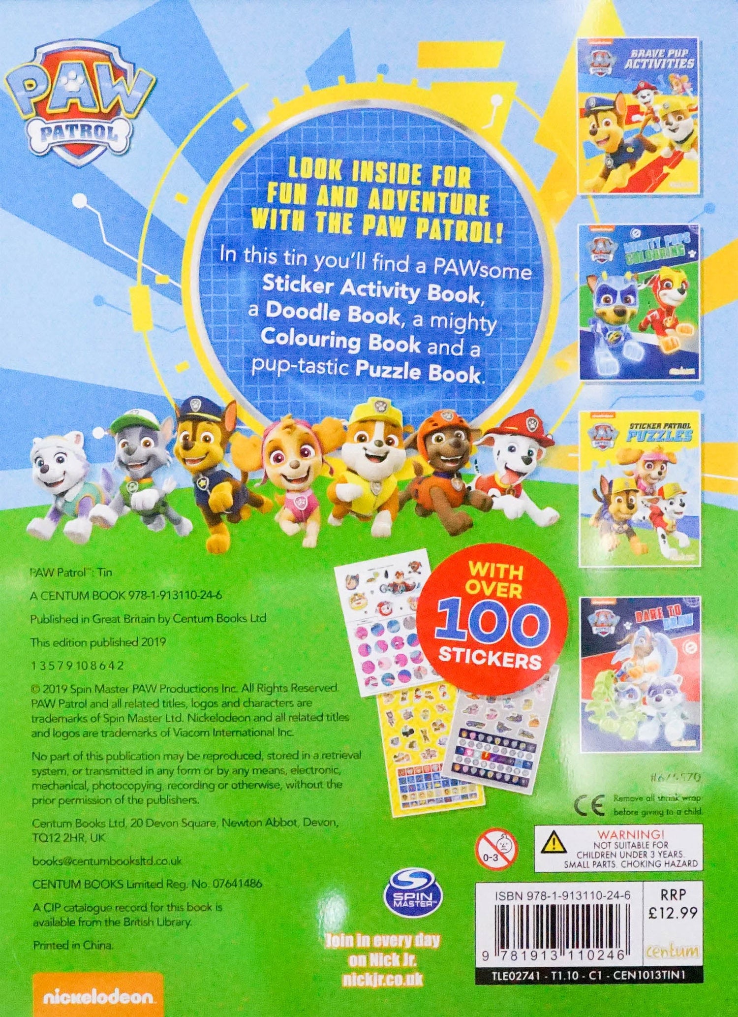 This pawsome gift is perfect for Paw Patrol fans everywhere! This pup-tastic tin includes 4 activity books full of puppy puzzles to complete. It even includes 4 sheets of super stickers to get creative with.