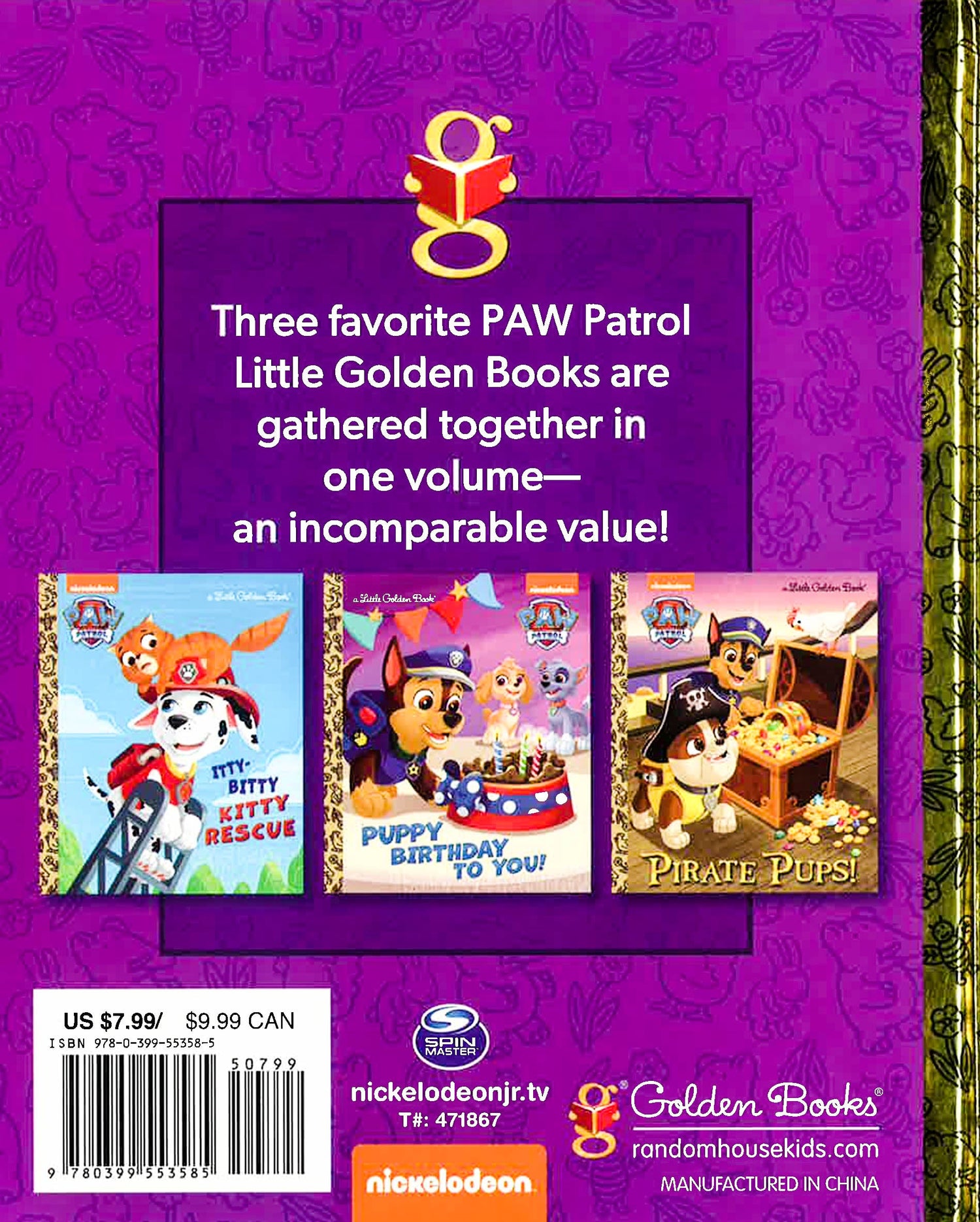 This hardcover storybook collection features three Nickelodeon PAW Patrol Little Golden Books: Pirate Pups, Itty-Bitty Kitty Rescue, and Puppy Birthday to You! It's a great gift for boys and girls ages 3 to 7!