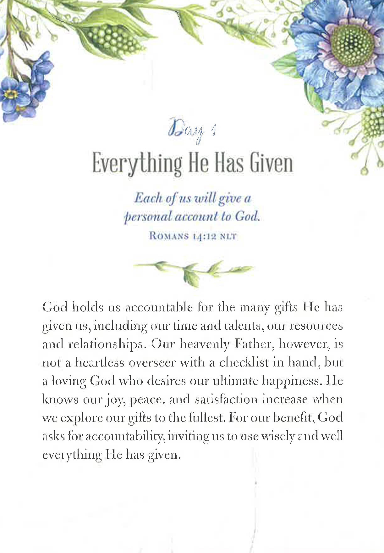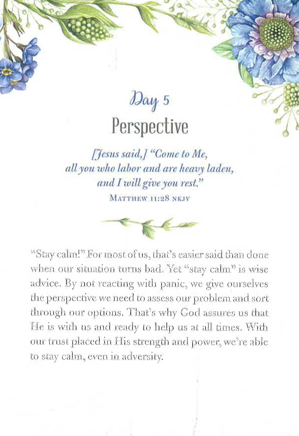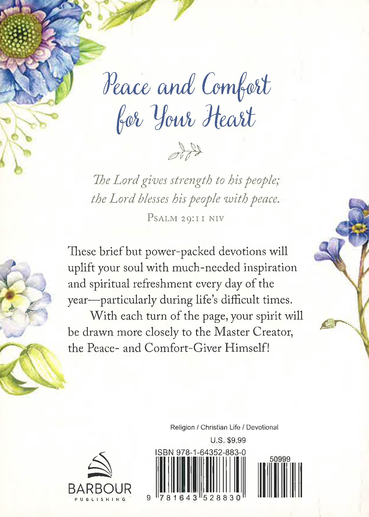 This lovely daily devotional offers just-right-sized readings for life's difficult times. The 365 devotional readings feature themes important to your heart--including Contentment, Courage, Forgiveness, Gratitude, Perseverance, Security, Trust, Wisdom, and dozens more. As you move through the pages of Peace and Comfort for Difficult Times, you’ll be inspired each day of the year as you experience the refreshing assurance and love that can only be found through an intimate relationship with the Master Creator.