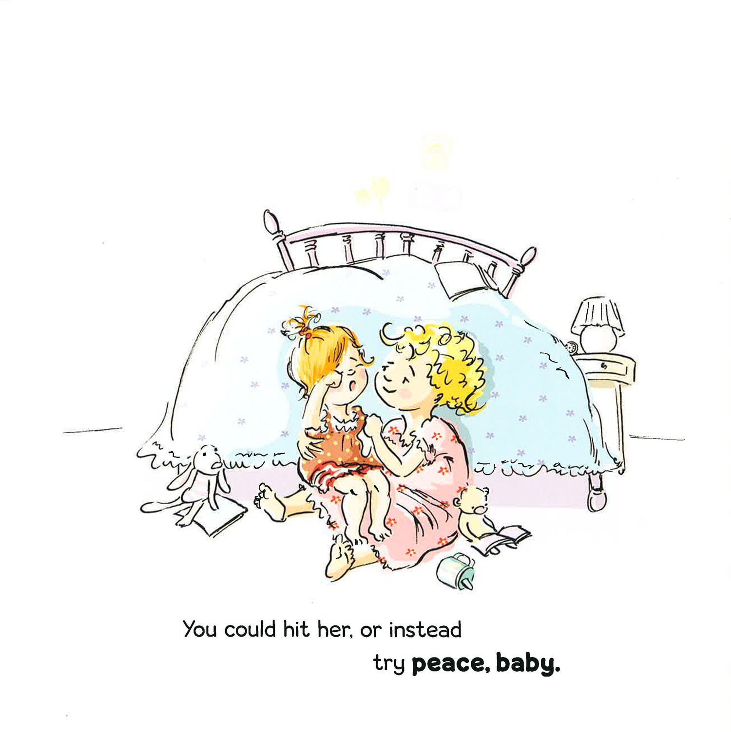 Spill the batter for the cakes? Everybody makes mistakes. That's Peace, Baby! Acclaimed author Linda Ashman gives new meaning to a familiar idea in this tale about intense feelings, compassion and making peace. Gentle, clever rhymes illustrate the unpredictable emotions of childhood and show readers a smart way to deal with these feelings. It's all groovy, baby; just say peace!