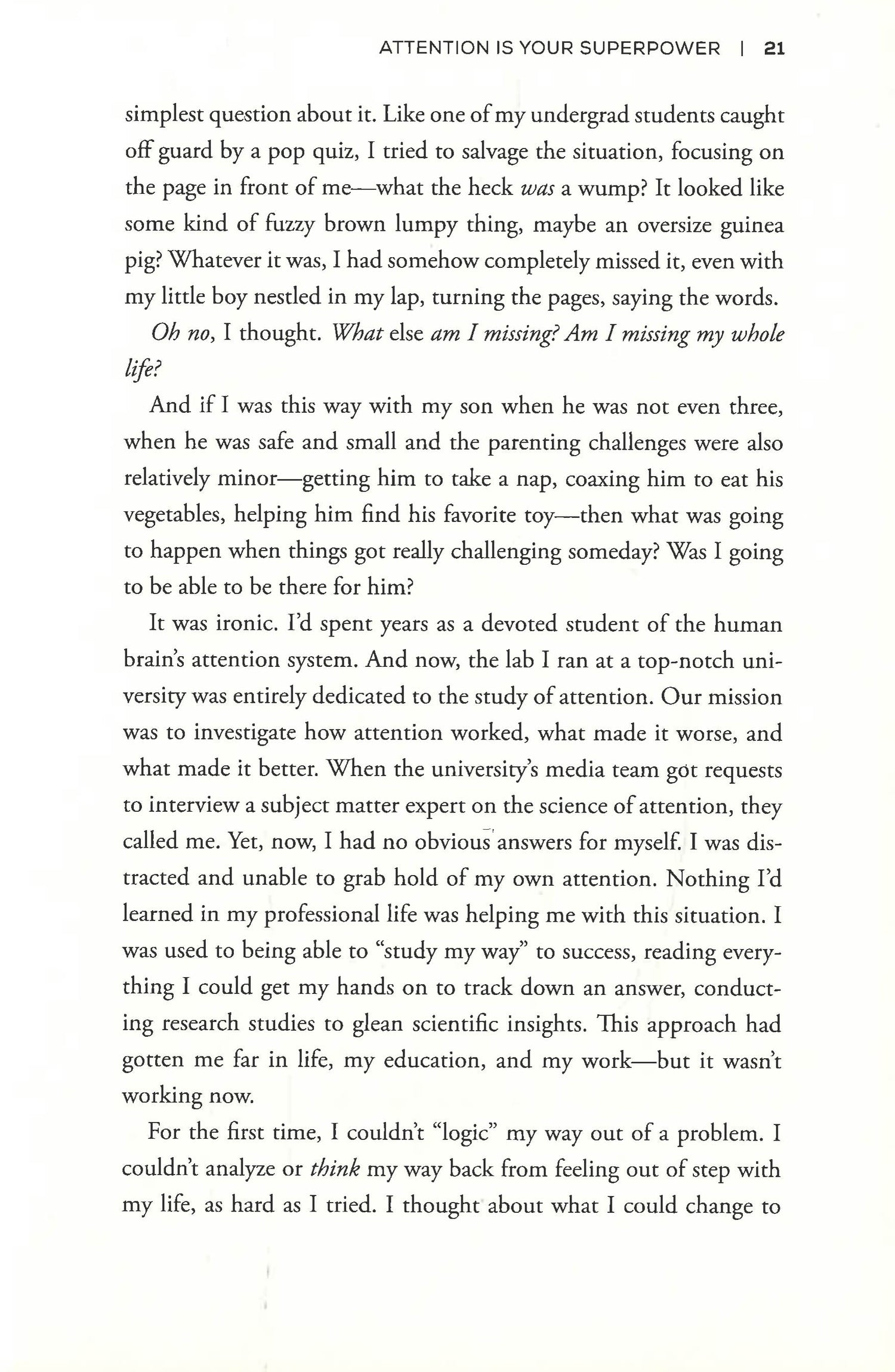 From the constant pull of technology to the 24-hour news cycle to the overwhelming demands of work, our ability to concentrate is being strained as never before. We're all suffering from a collective attention deficit disorder that is leaving us feeling scattered, overwhelmed, and anxious - yet unable to resist distractions like emails, Zoom calls, or new texts or notifications. We actually use 100 per cent of our attention at every waking moment, but Dr Jha has discovered that unless we create room in our minds through specific and targeted daily practice, we cannot control what captures our attention leaving us vulnerable to every distraction, an experience she calls attention degradation. Peak Mind introduces the one cognitive training technique proven to improve attention and performance: mindfulness training. Dr Jha explains exactly how to implement this twelve-minute-a-day training program into daily life. Honed and proven in her lab, this revolutionary program will help you learn to ignore distractions and take control of your attention. Smart and accessible, interweaving science and illustrative stories from high-level people who've successfully used her techniques, Peak Mind debunks common assumptions and offers stunning new tools to radically improve our lives.