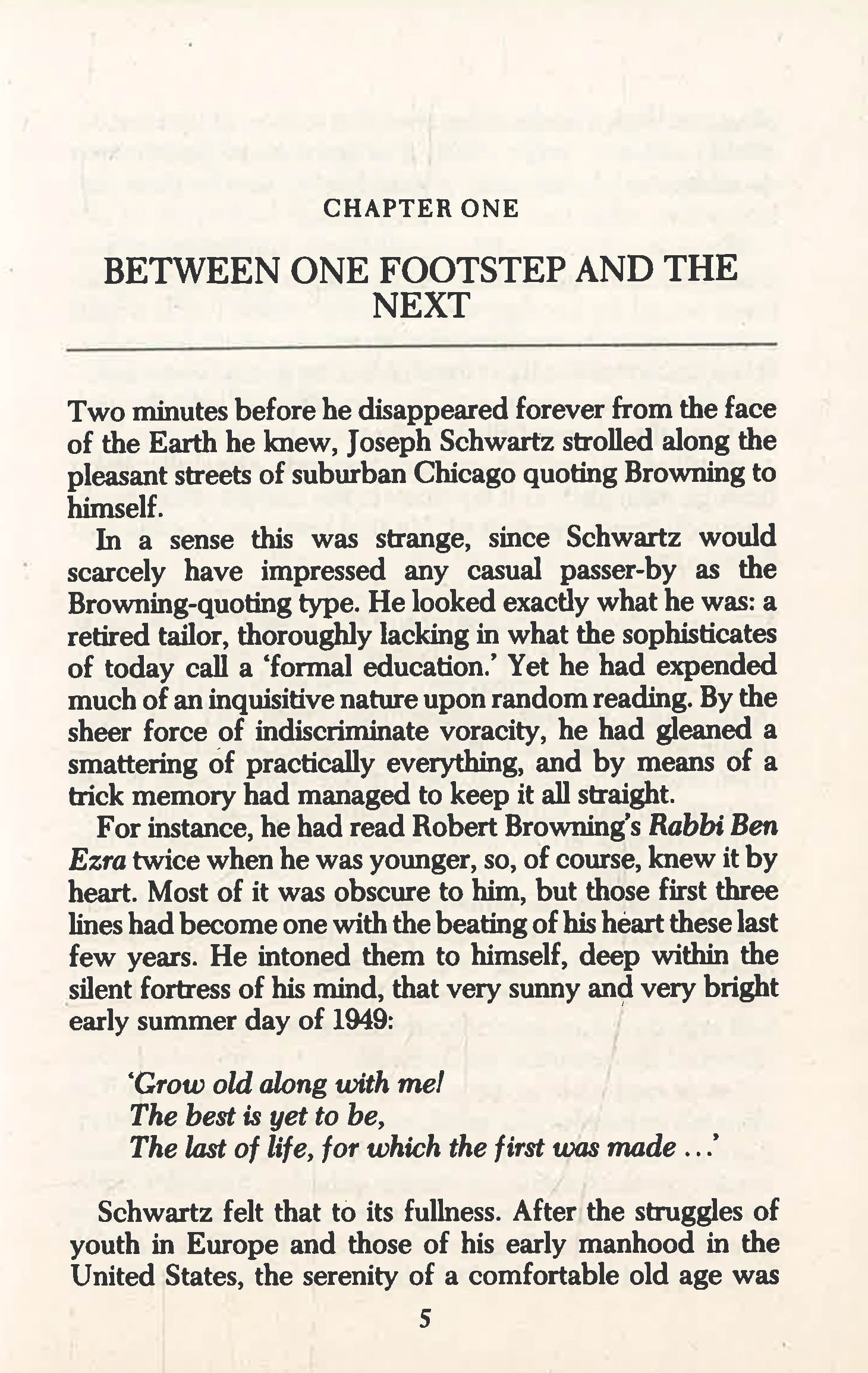 Caught up in an experiment gone wrong, Joseph Schwartz is transported forward in time from post-war Chicago to the heyday of the first Galactic Empire.