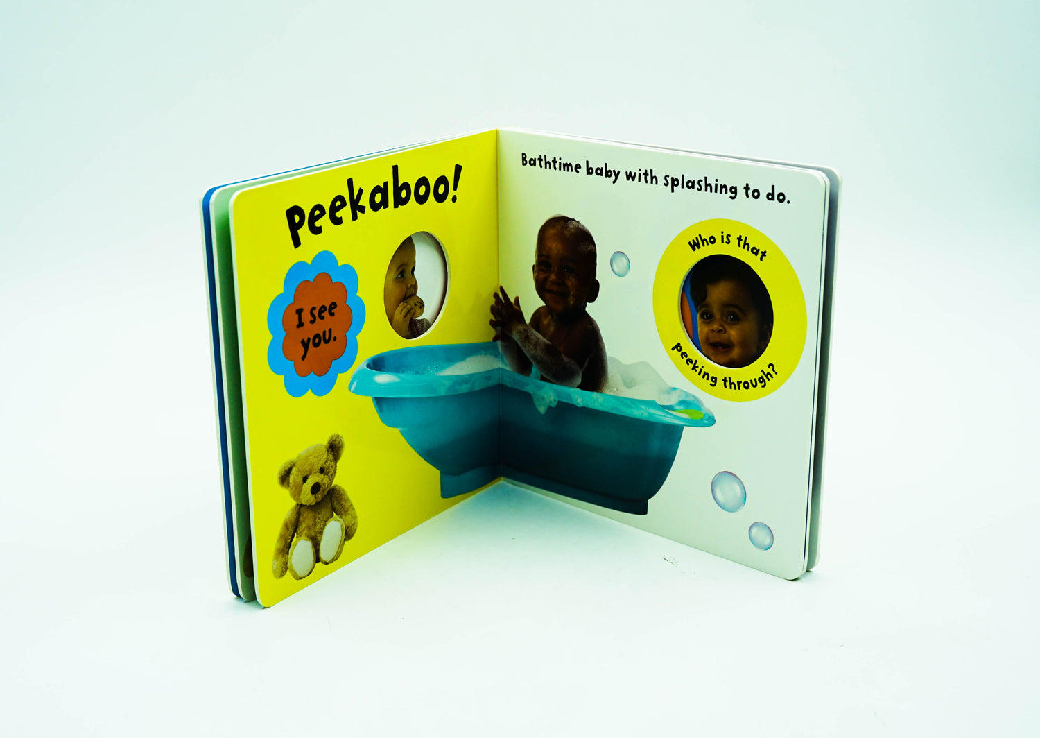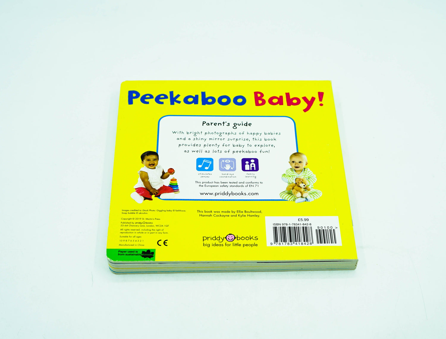 Babies will love to play along with Peekaboo Baby, a peep-through book of babies! Each page features a die-cut hole which looks through to the next page. Is there a happy baby peeping through or perhaps a cuddly bear? Little ones will love to follow the peep-through holes through to a fun mirror surprise at the back of the book. This engaging book, full of bright photographs of happy babies and colourful objects, will provide plenty for babies to explore and lots of peekaboo fun!