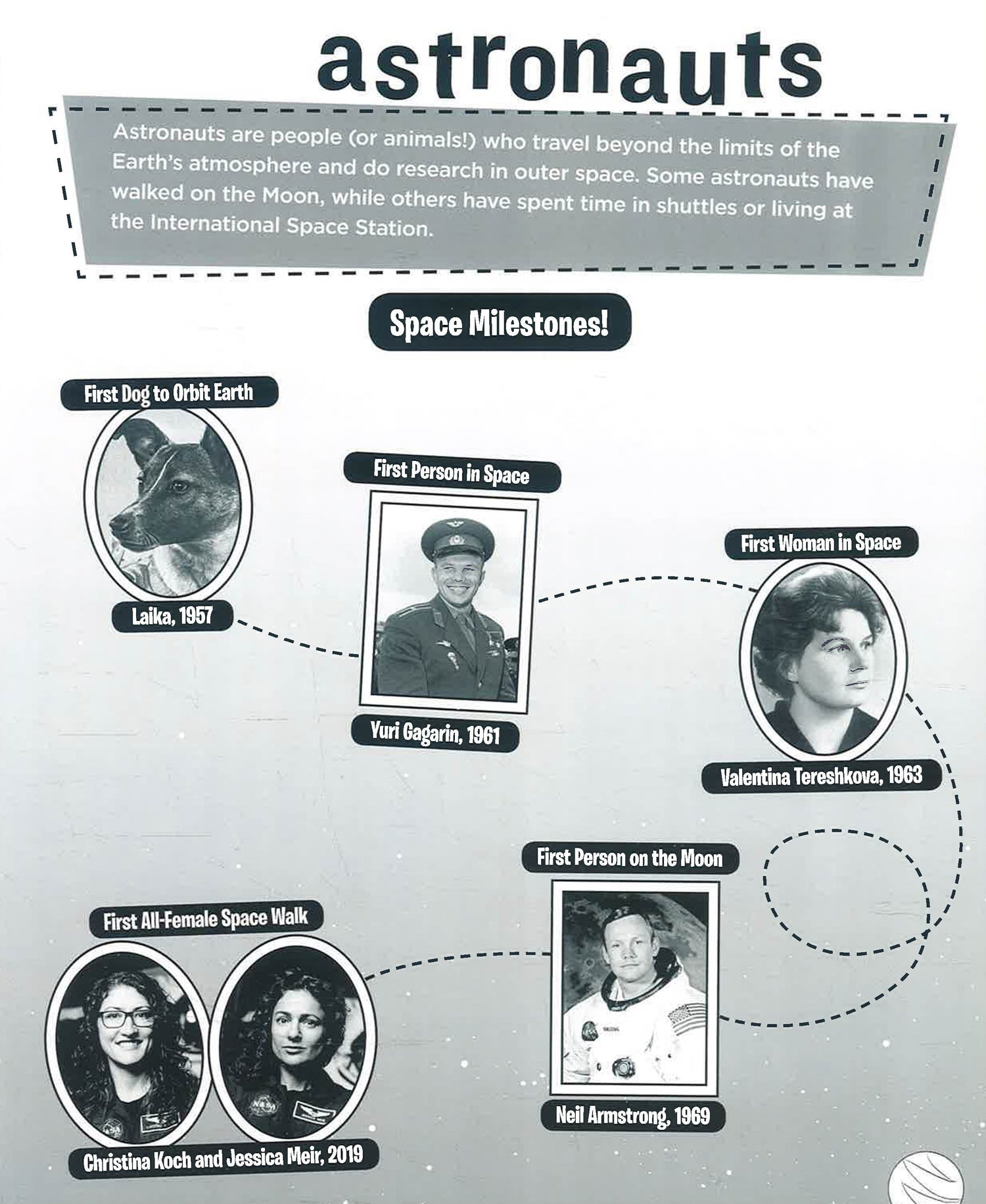 Blast off with hundreds of stickers featuring colorful planets, swirling black holes, explosive supernovas, sleek spacecraft, and many brave astronauts—including Laika, the first dog in space! Plus go on a mission to Mars, create a constellation, orbit the sun in the asteroid belt, and float around the international Space Station as you explore the mysterious wonders of the universe.