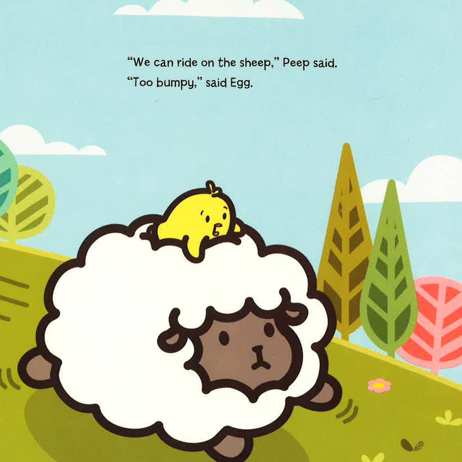 Peep is so excited for Egg to hatch! They are going to have the best time together jumping in the hayloft, riding on the sheeps' backs, splashing in puddles, and playing hide and seek. If only Egg would just hatch already! But Egg thinks the outside world is too dangerous. Thanks to some nudging from Peep, Egg eventually comes out of her shell and discovers that maybe the world isn't so scary with a friend at her side.