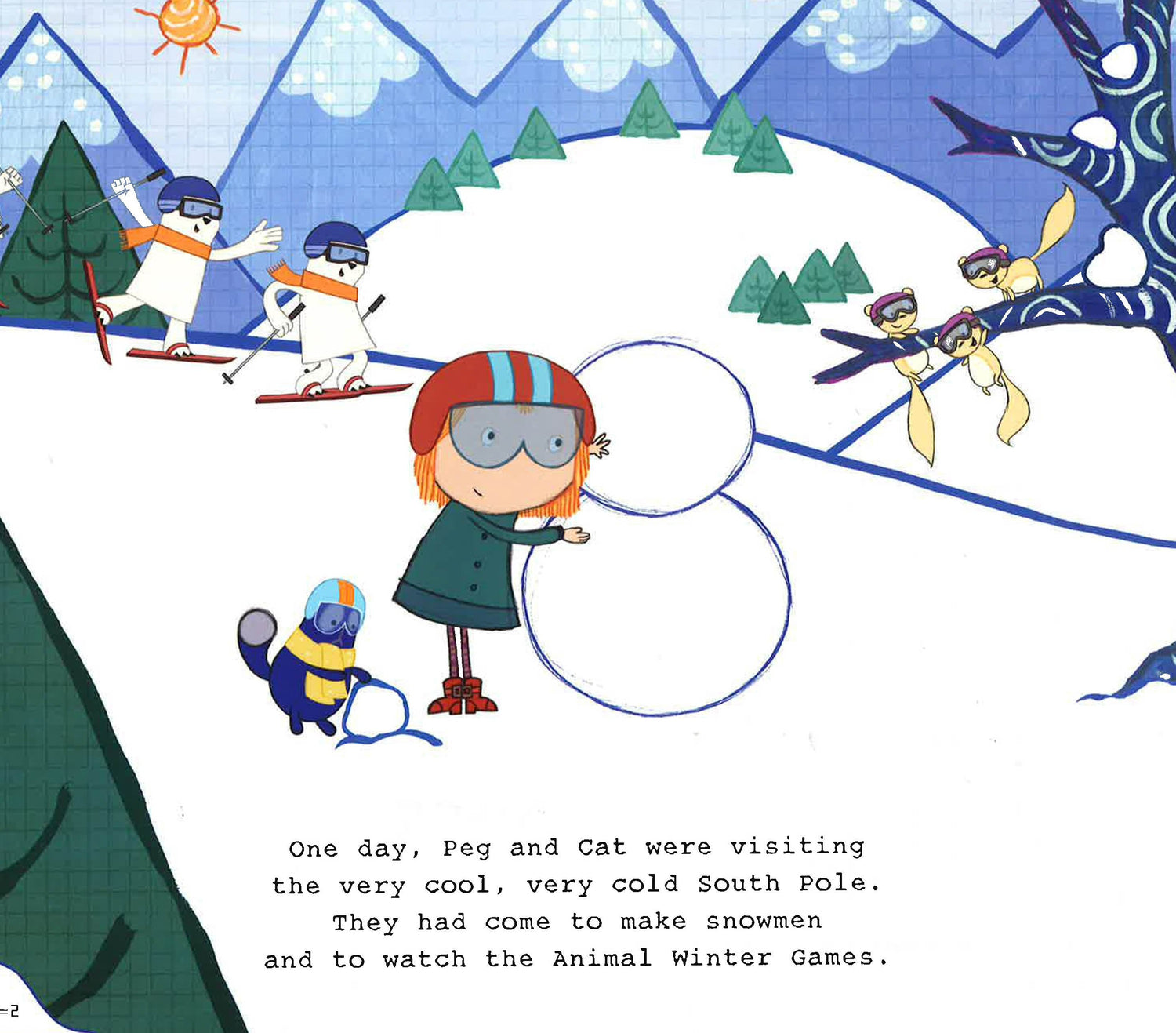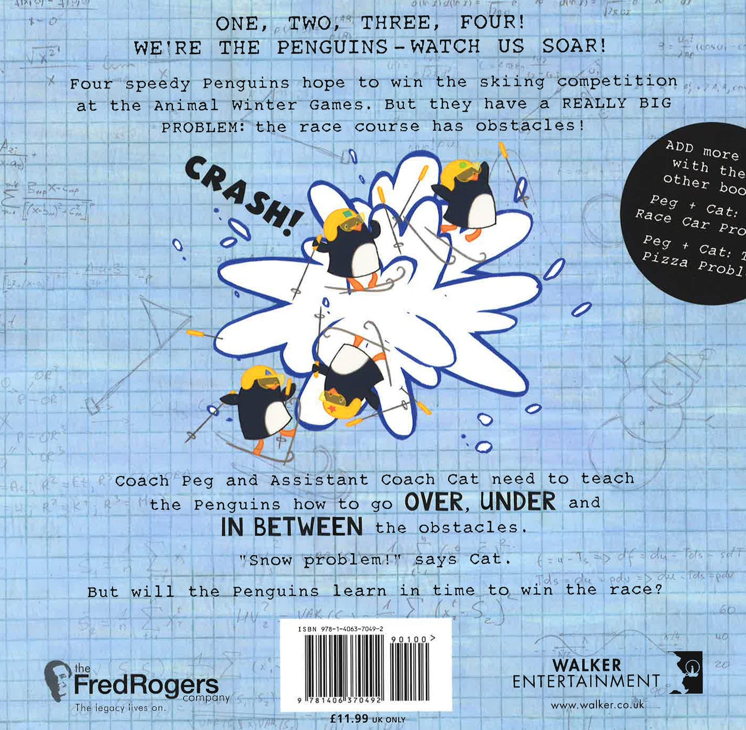 Skiing past hurdles can be a problem when you're a penguin that doesn't know its over, under, and in between. Peg and Cat fans will race to this wacky, wintry picture book!"One, two, three, four! We're the Penguins - watch us soar!" This sporting picture book begins with Peg and Cat preparing to watch the ski race at the Animal Winter Games at the South Pole. Suddenly they spy the Penguins zooming downhill. CRASH! Peg and Cat soon see the root of the problem: the Penguins don't know what over, under, and in between mean! Can newly appointed Coach Peg and Assistant Coach Cat teach the Penguins in time for the competition?