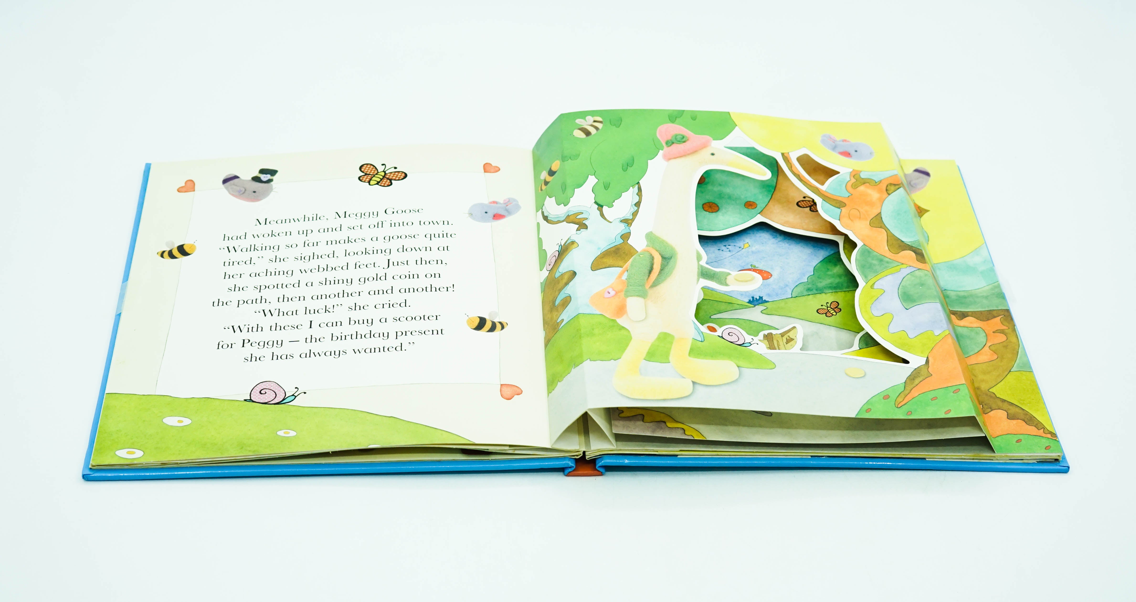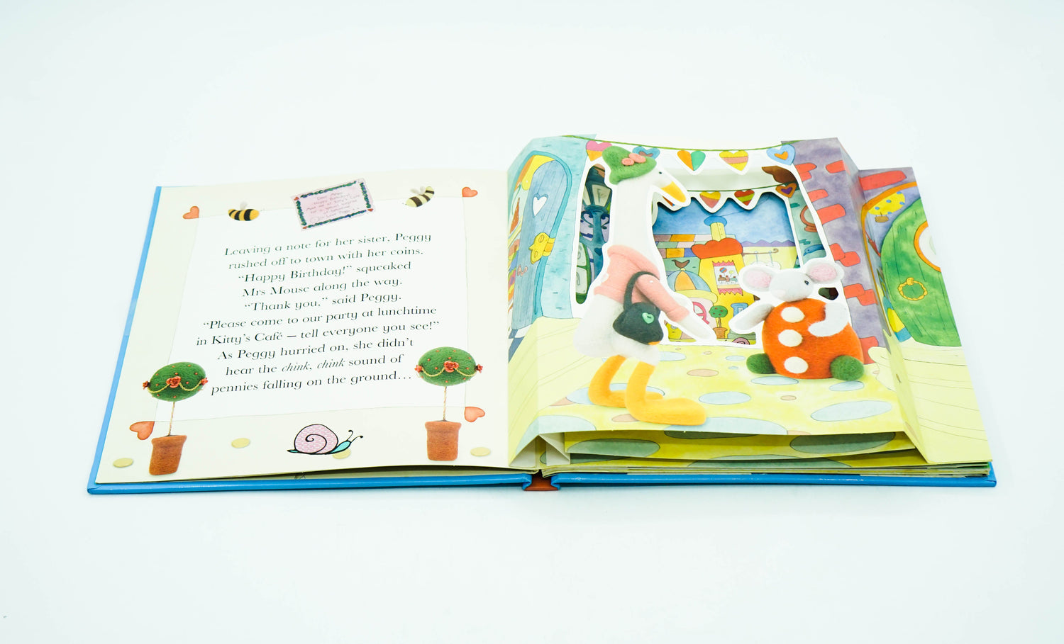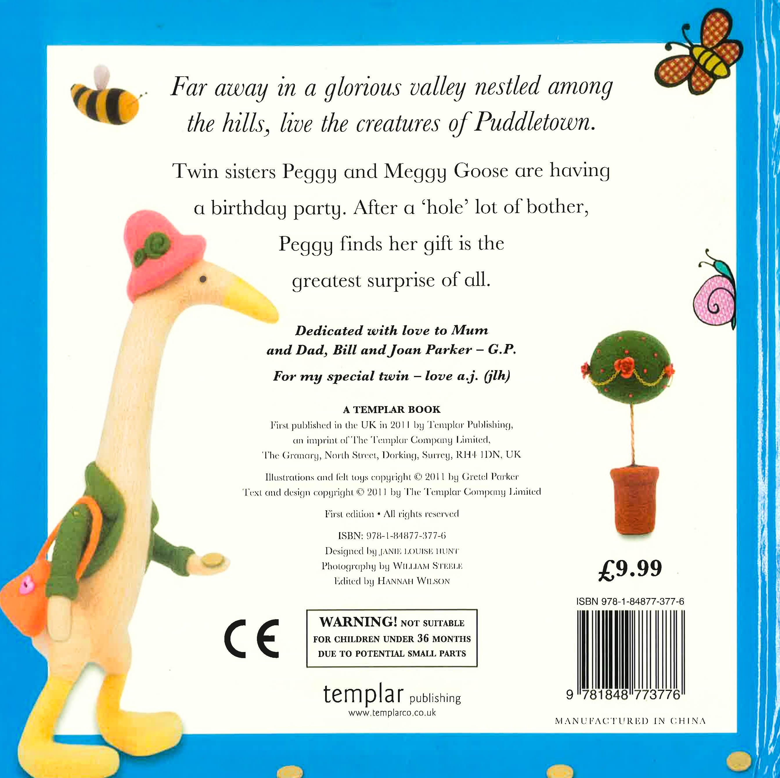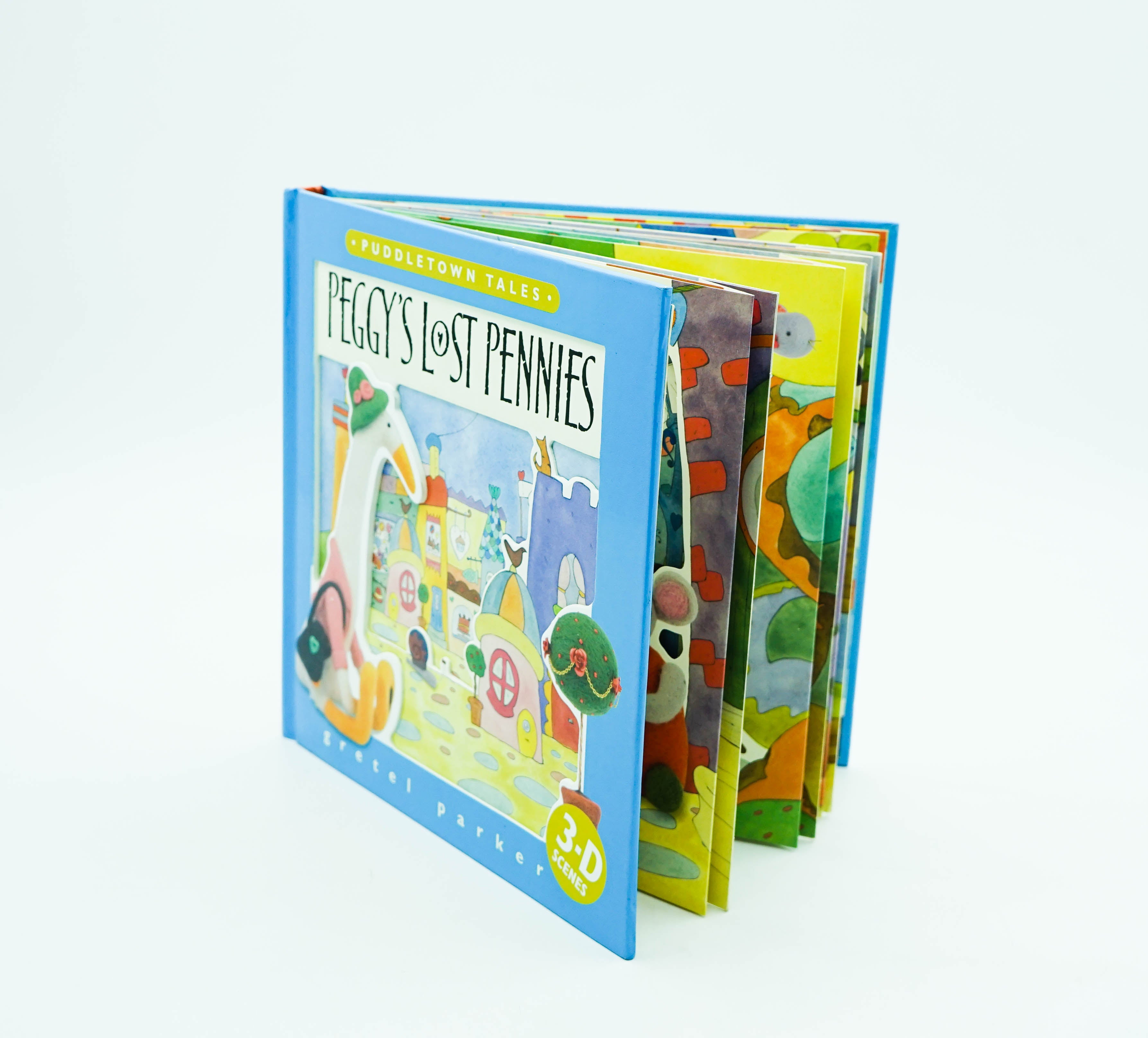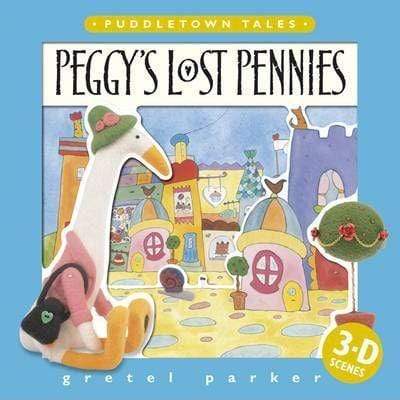 Far away in a glorious valley nestled among The hills, live the creatures of Puddletown. These delightful tales were inspired by Gretel Parker's needle-felt sculptures, whose photographs appear in the foreground of each multi layered scene. An unexpected birthday surprise is revealed in Peggy's Lost Pennies.