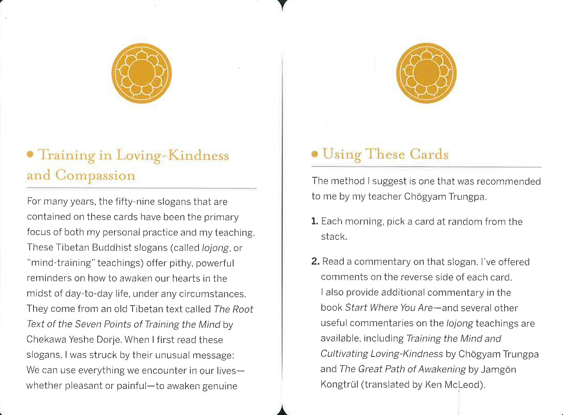 * fifty-nine cards representing the full set of lojong teachings for daily inspiration and contemplation