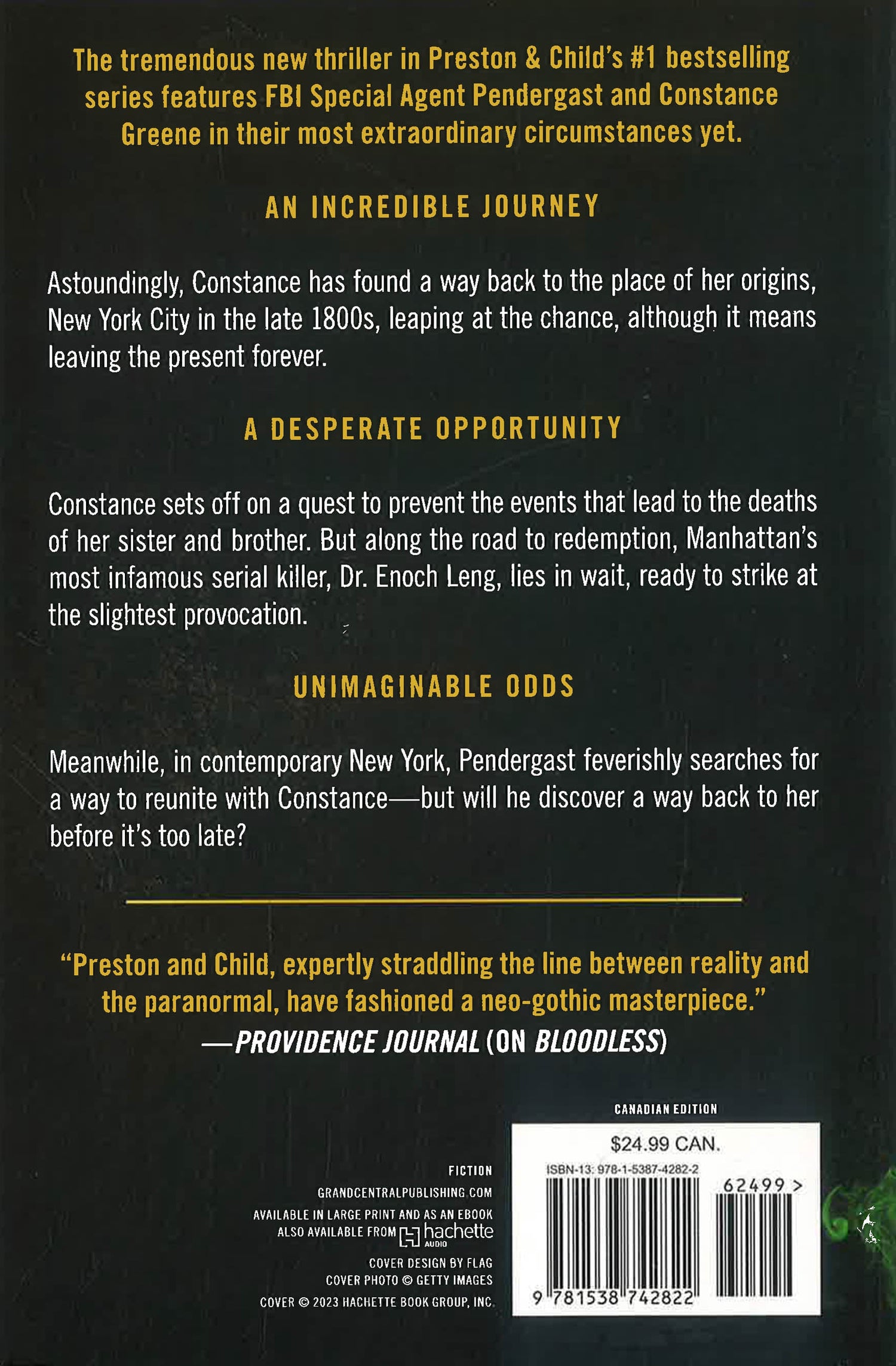 Following the events of Bloodless, FBI Special Agent A.X.L. Pendergast and Constance Greene return. Against all odds, Constance has found a way back to the place of her origins, New York City in the late 1800s. She sets off on a quest to prevent the events that lead to the deaths of her sister and brother, and stop Manhattan's most infamous serial killer, Dr. Enoch Leng, before his nefarious experiments come to fruition.