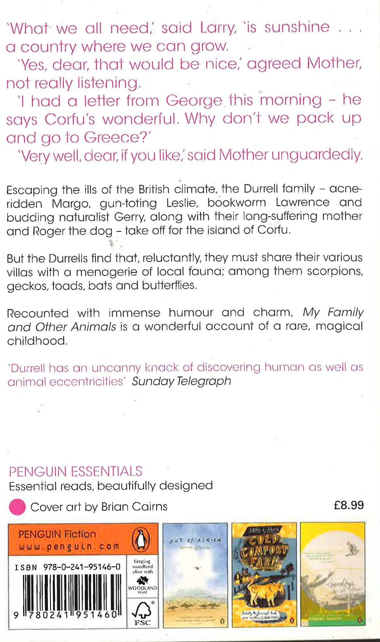 My Family and Other Animals is the bewitching account of a rare and magical childhood on the island of Corfu by treasured British conservationist Gerald Durrell, beautifully repackaged as part of the Penguin Essentials range.