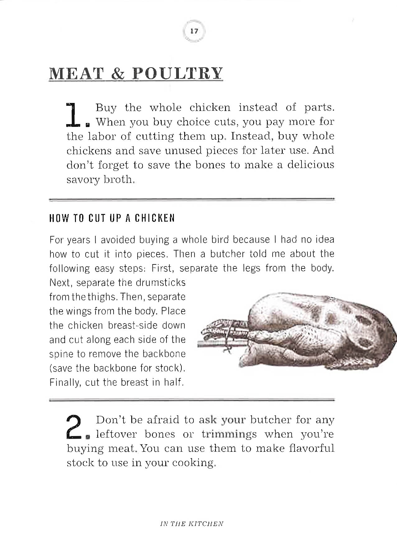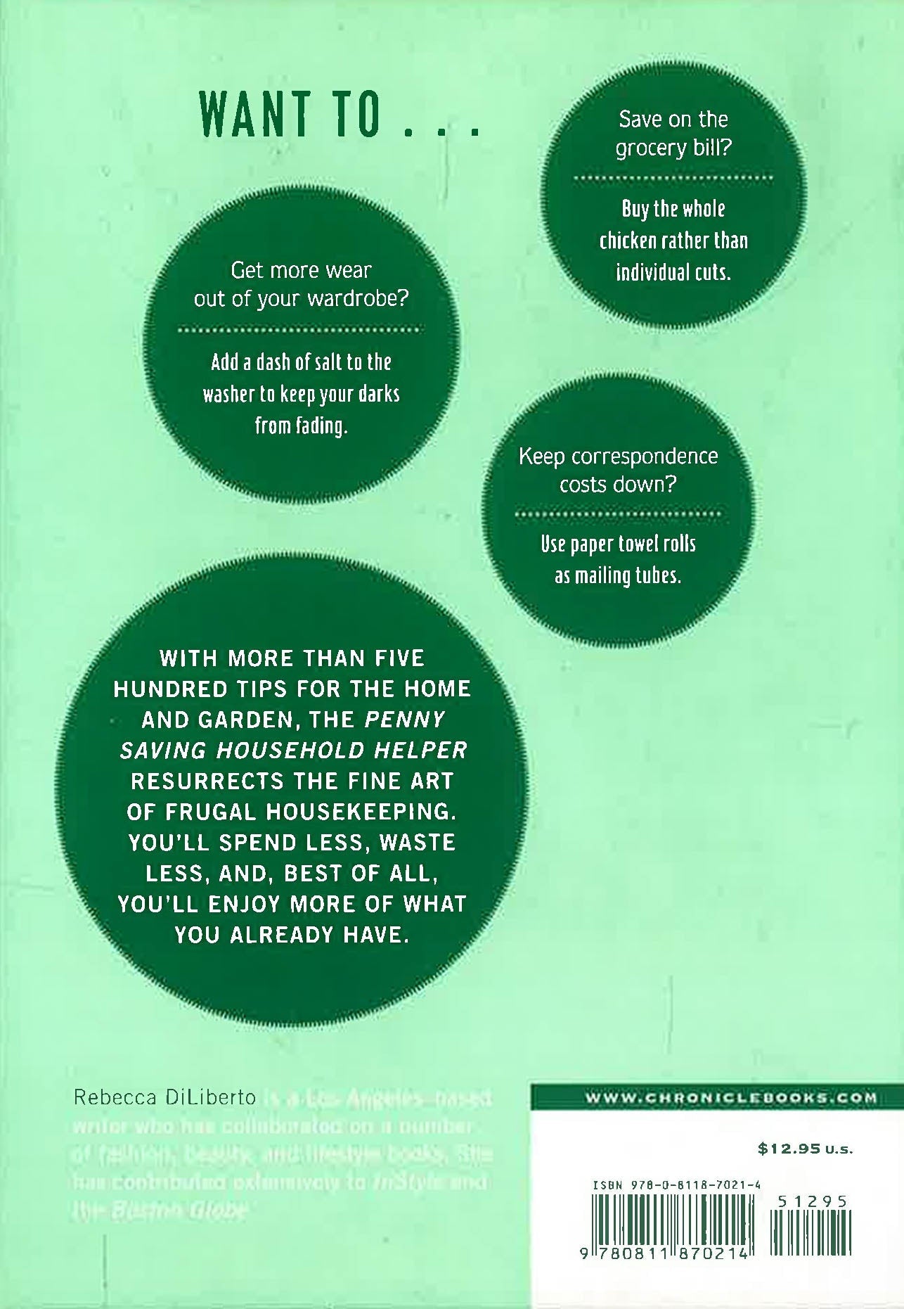 This handy guide resurrects the fine art of frugal housekeeping with over 500 tips on saving money throughout the home and garden. Learn creative ways to cut back, pinch pennies, reduce, recycle, and re-use. Want to save on the grocery bill? Buy the whole chicken rather than individual cuts. Get more wear out of your wardrobe? Add a dash of salt to the washer to keep your darks from fading in the laundry. Keep correspondence costs down? Use paper towel rolls as mailing tubes. This book is positively brimming with such sound advice. Lovely vintage-inspired line drawings and a beautiful foil-stamped cloth cover make this an ideal stocking stuffer or newlywed gift.