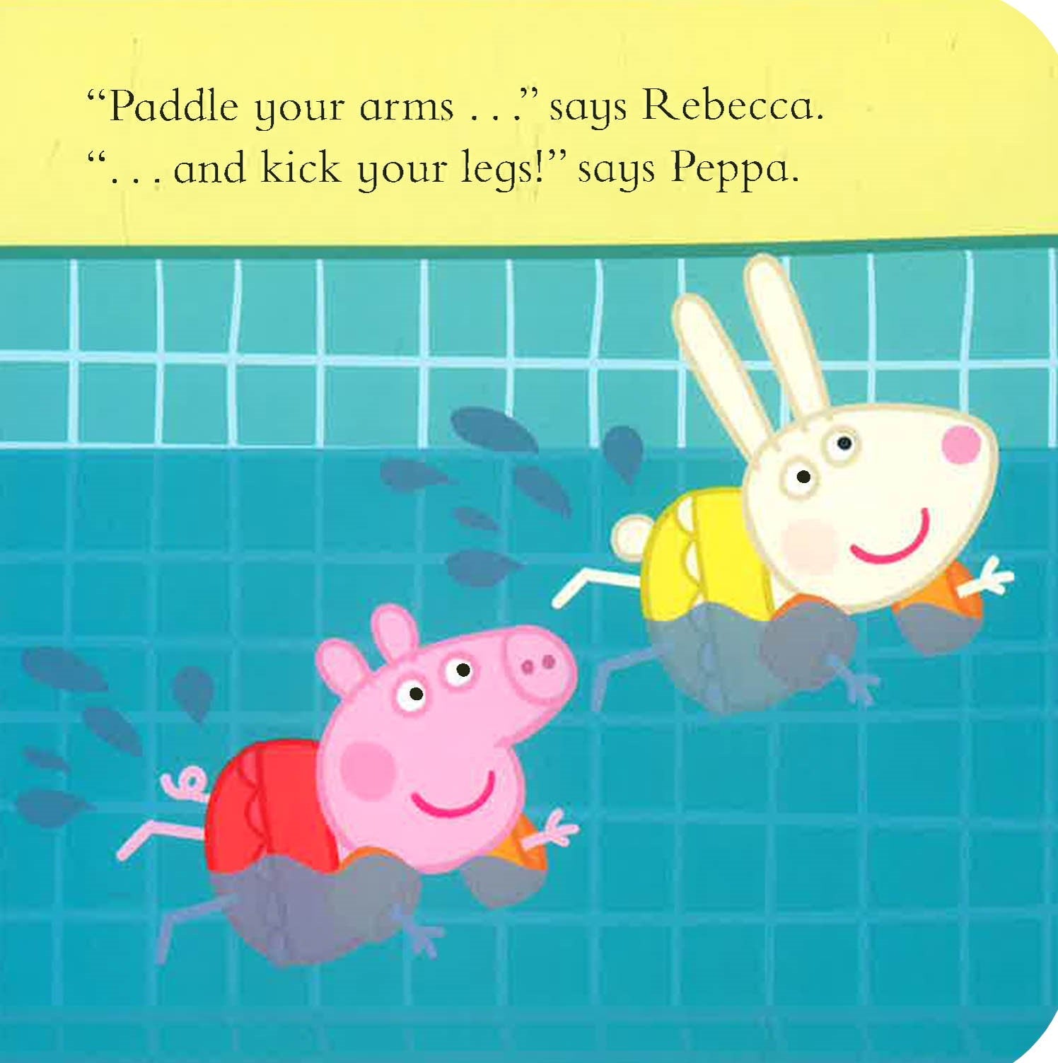 Peppa loves playing with her friend Rebecca Rabbit. They like going swimming together.