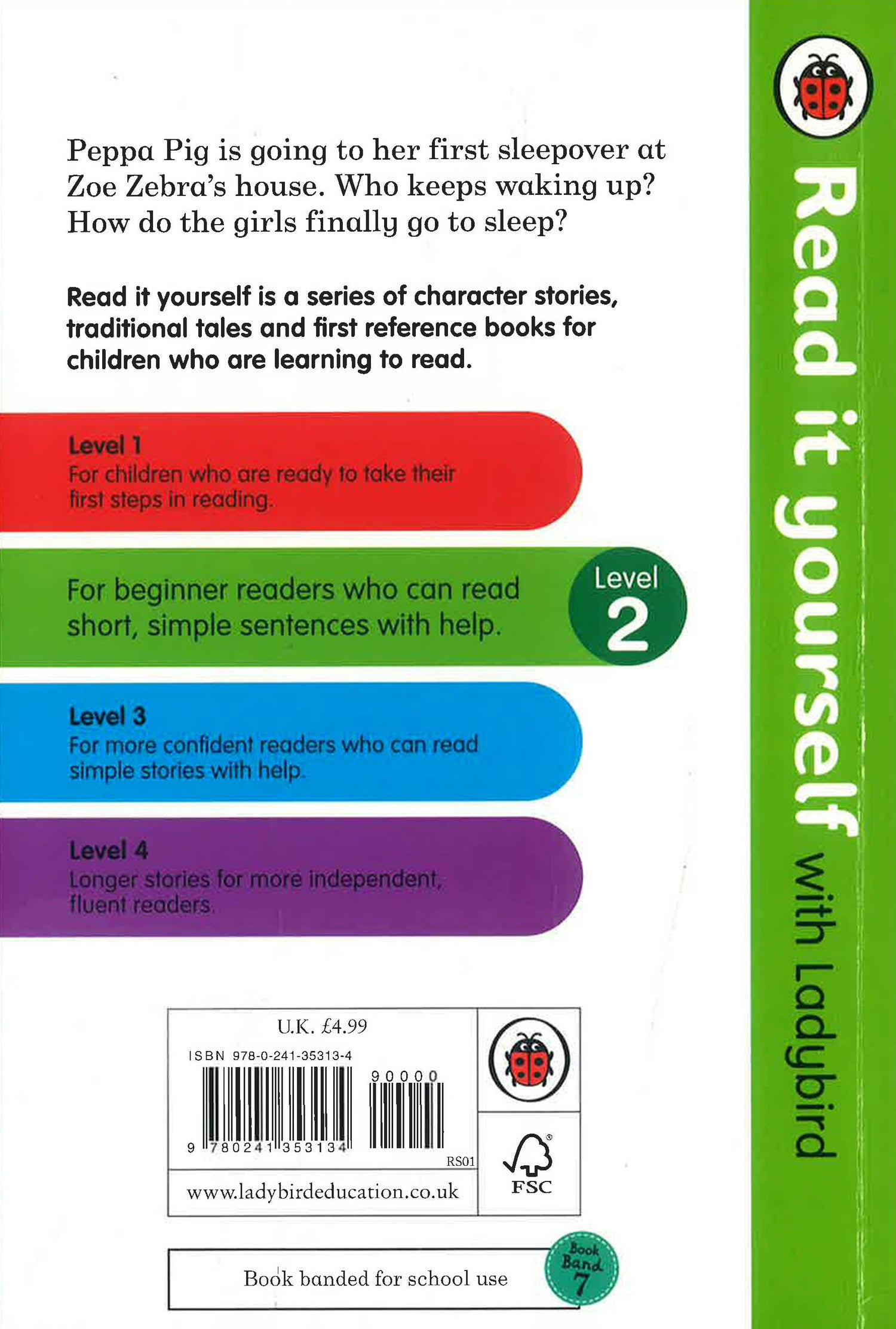 Peppa Pig is going to her very first sleepover at Zoe Zebra's house. The most important thing about a sleepover is that you must not sleep! With music, a midnight feast and a scary story, can Peppa and her friends stay awake? Read more in this delightful piggy tale.