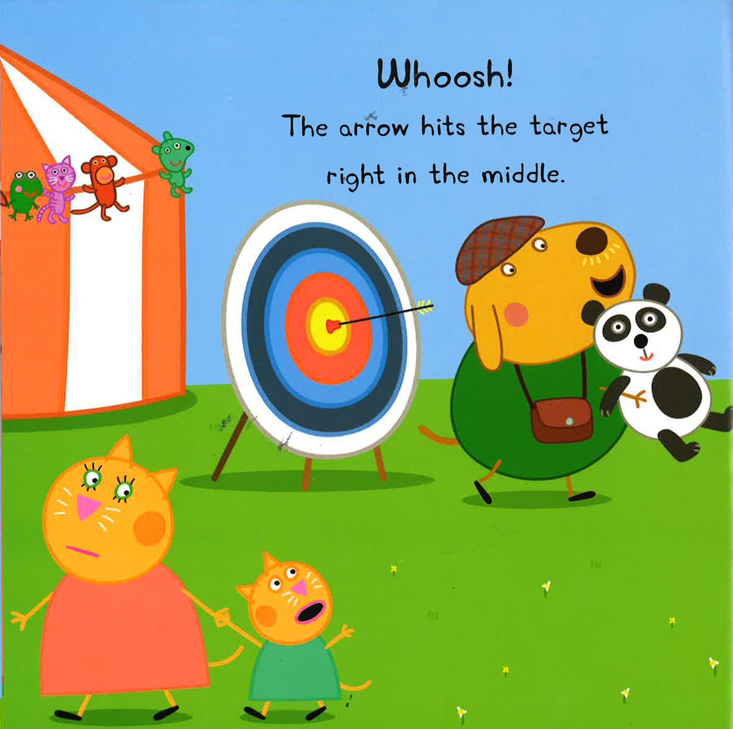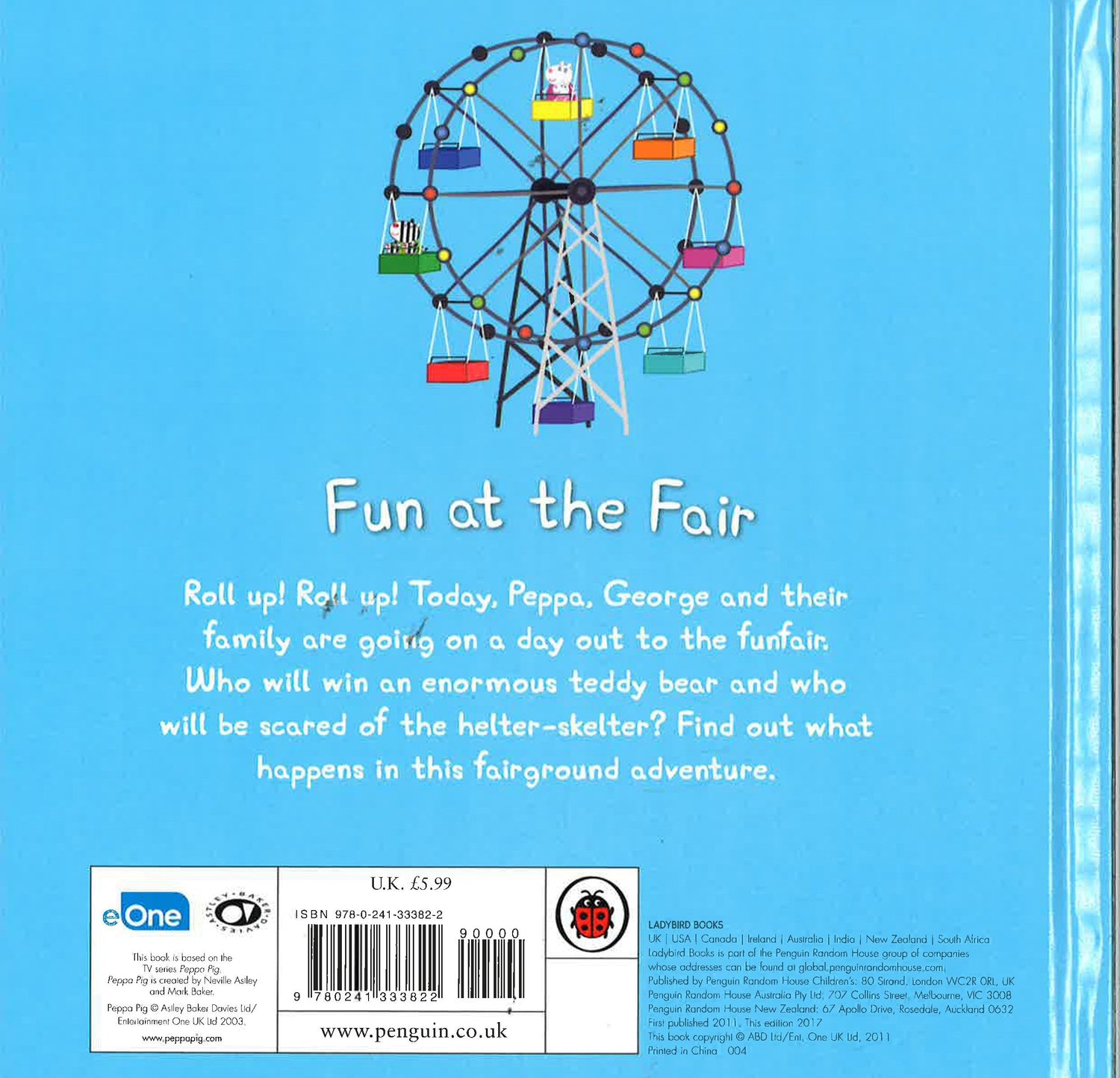 Roll up! Roll up! Today, Peppa, George and their family are going on a day out the funfair. Who will win an enormous teddy bear and who will be scared of the helter-skelter? Find out what happens in this fairground adventures.