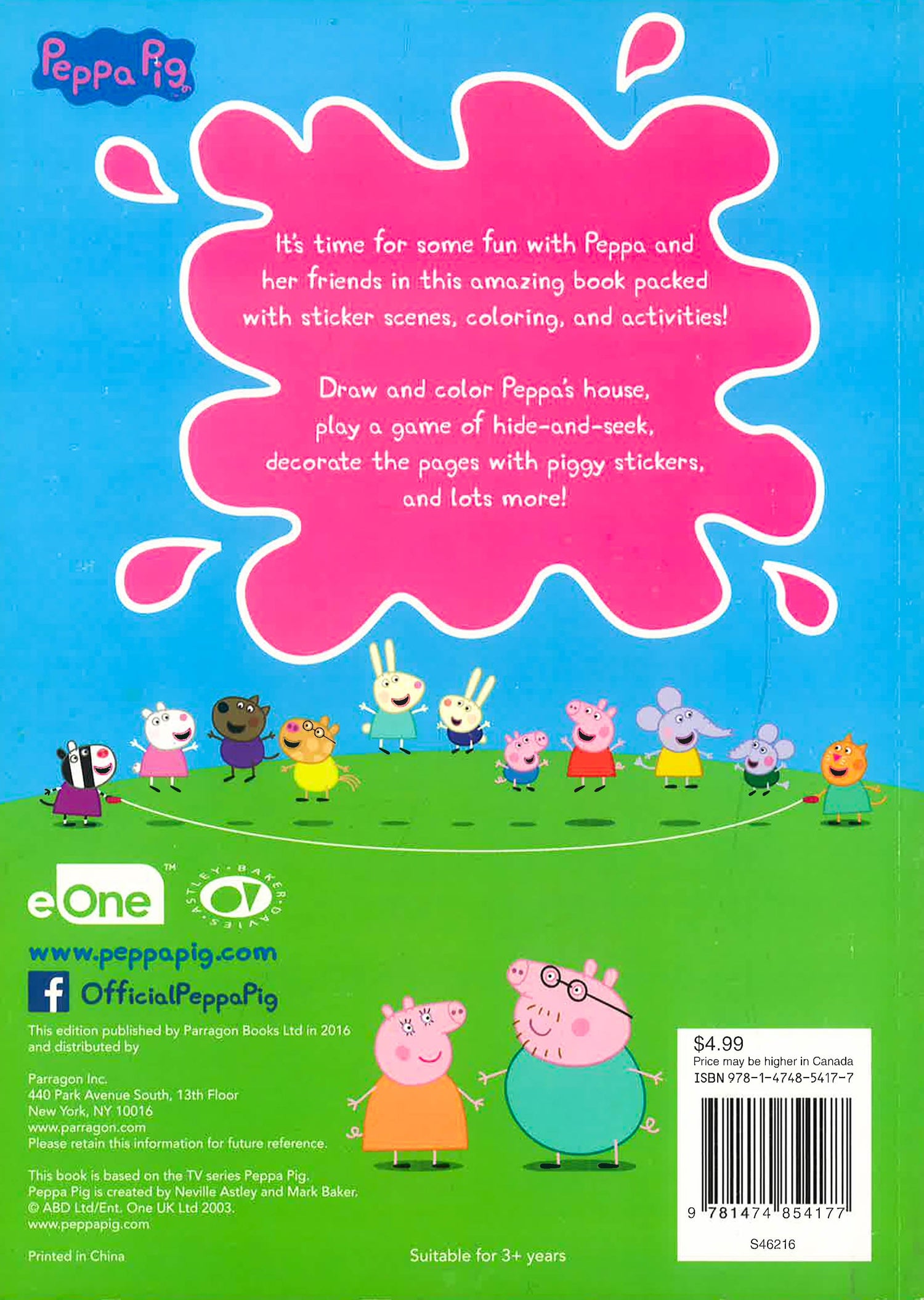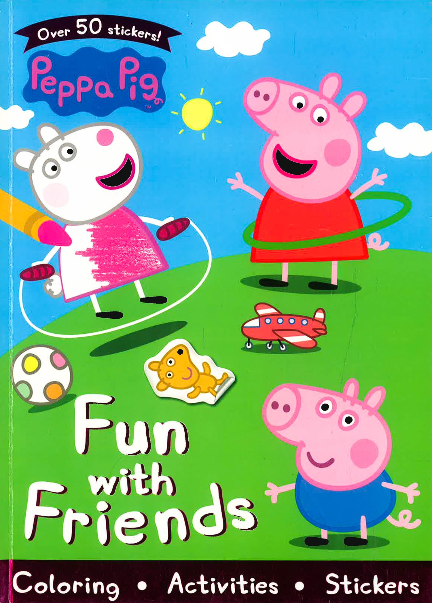 It's time for some fun in this amazing activity book, Peppa Pig Fun with Friends, packed with sticker scenes, coloring, and activities! Draw and color Peppa's house, play a game of hide-and-seek, decorate the pages with over 50 adorable piggy stickers included and lots more!