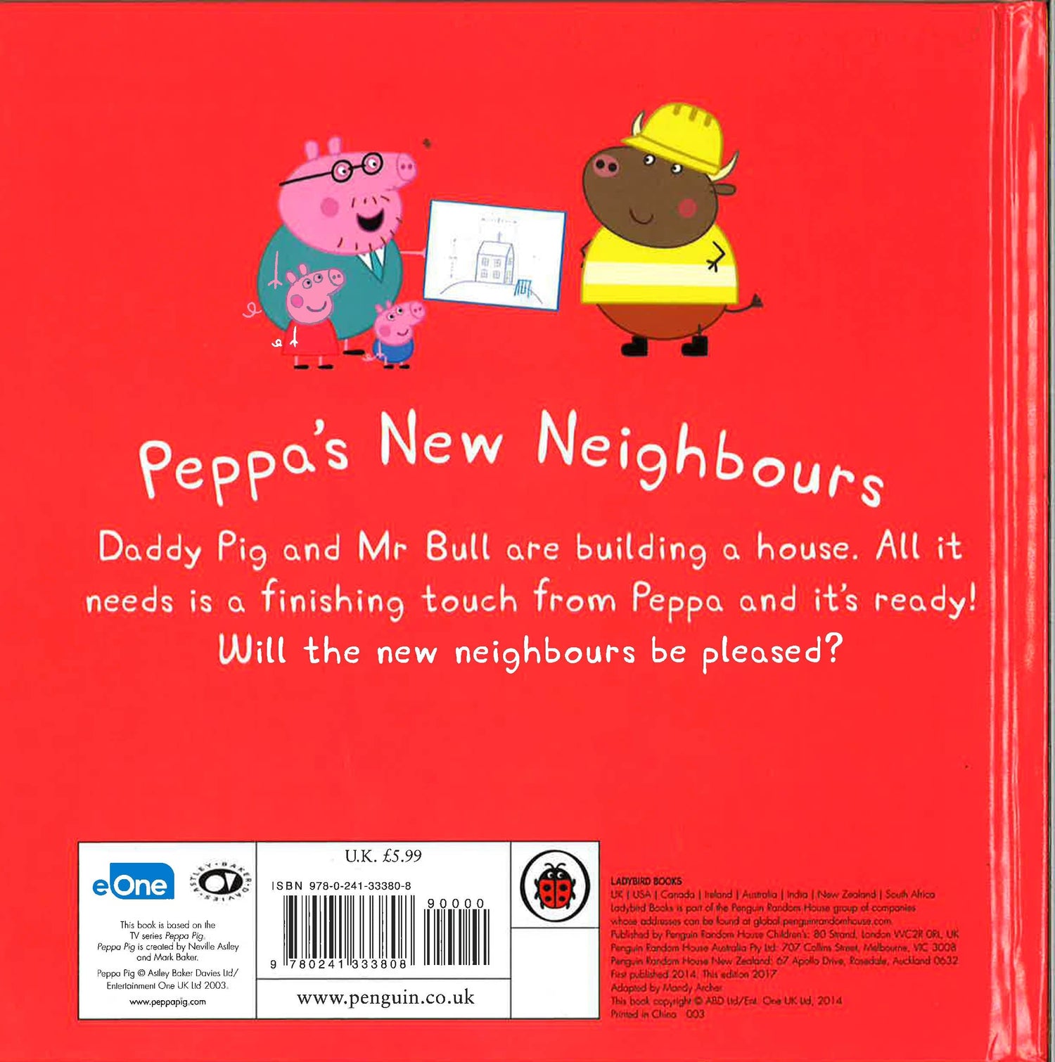 Daddy Pig and Mr Bull are building a house. All it needs is a finishing touch from Peppa and it's ready! Will the new neighbours be pleased?