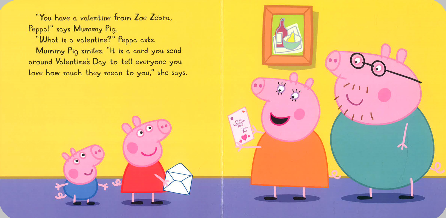 Peppa gets a fancy card in the mail from her friend Zoe Zebra. It is a Valentine's Day card! Peppa learns all about the meaning of Valentine's Day and how to show her friends just how special they are to her.