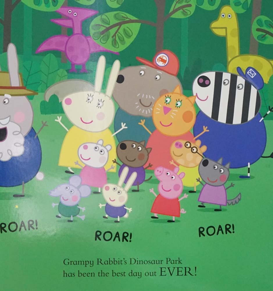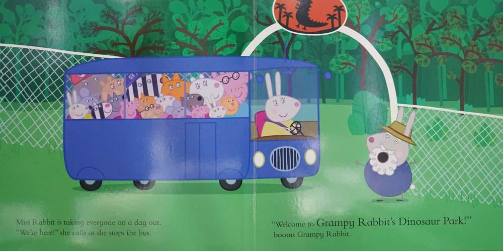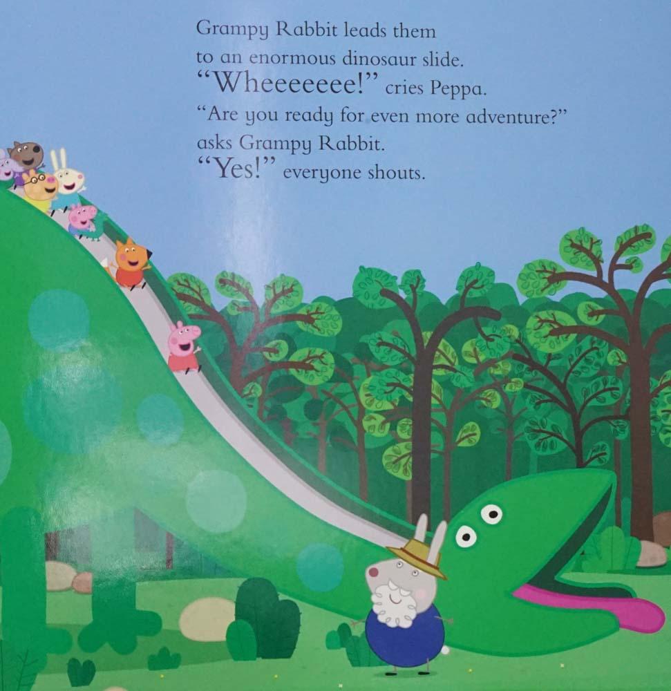 Peppa Pig, George and their friends are going on a big adventure to Grampy Rabbit's Dinosaur Park. At the park they follow some mysterious footprints, go down a giant dinosaur slide, and track down a huge dinosaur egg. At the end of the day Peppa and all her family and friends sing the 'Dinosaur Stomp' song!