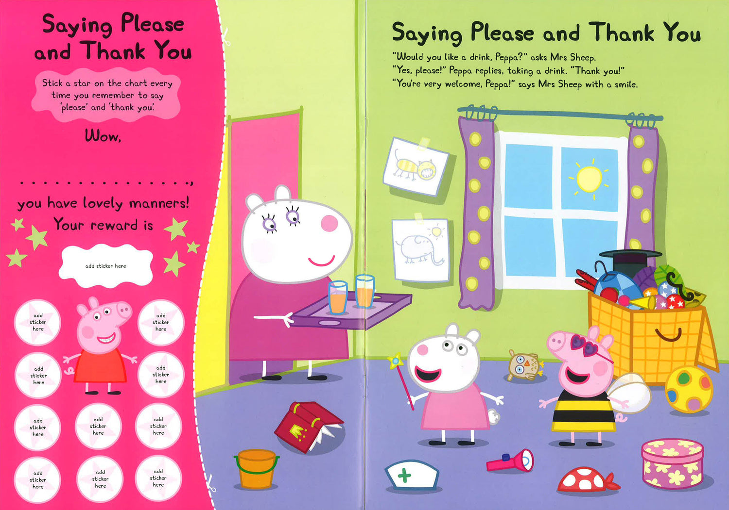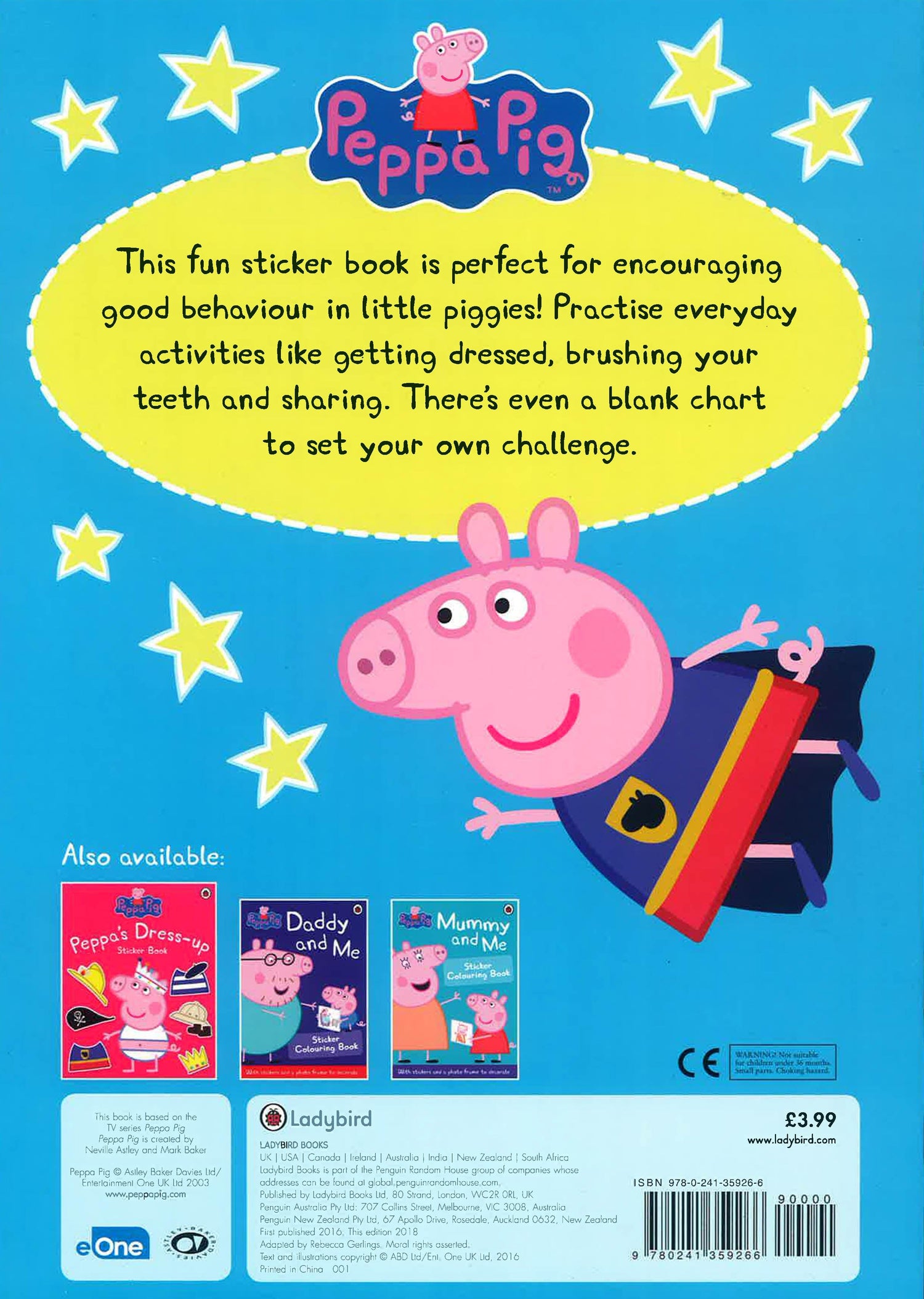 Peppa and George practise lots of important skills, such as tidying up, saying please and thank you, brushing their teeth and crossing the road safely in this fun activity book. Your child can join in too, with the reward chart on each page and stickers to congratulate them with on a job well done. There's even space to add your own challenge for whatever your child most needs help practising!