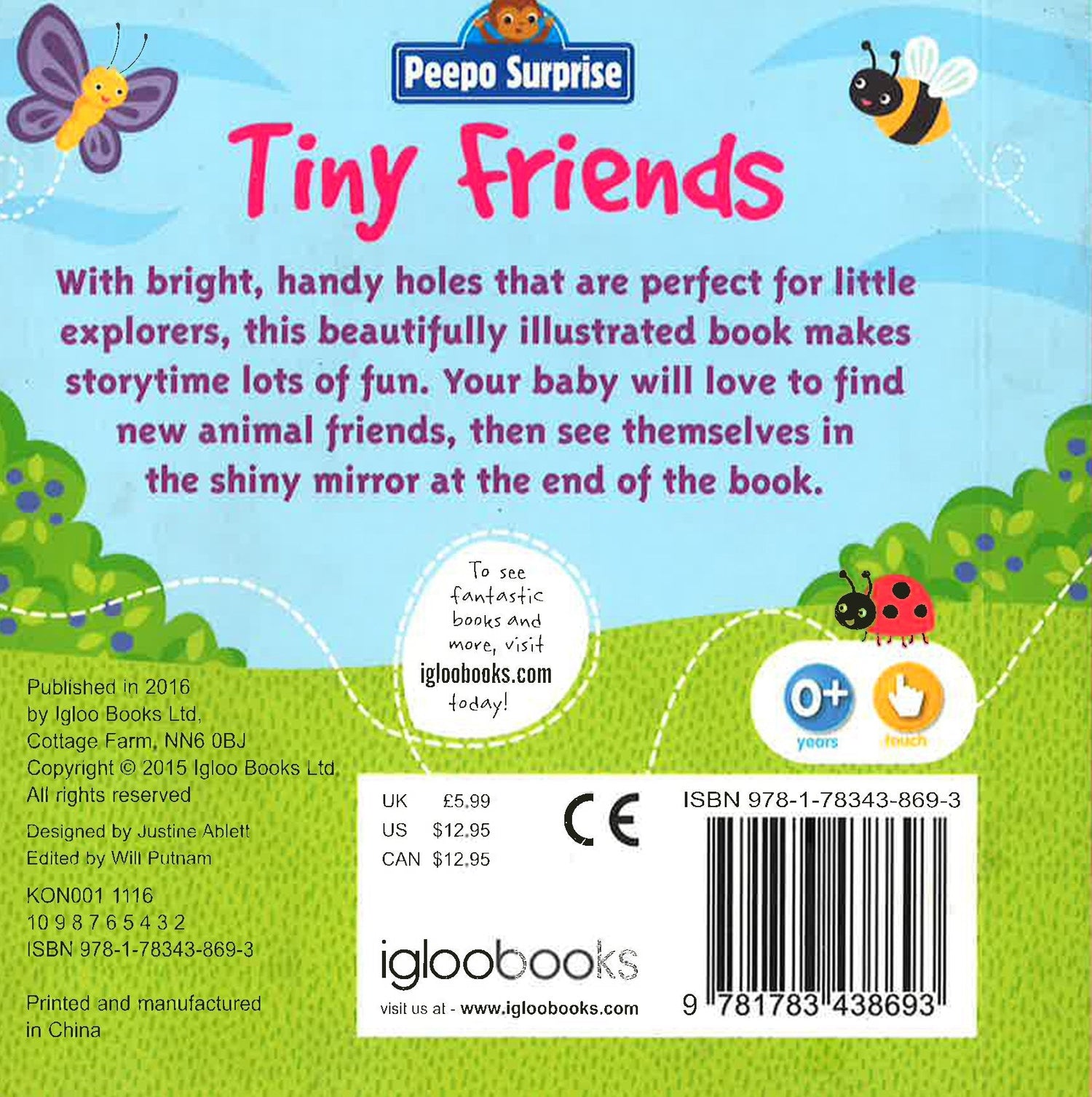 With bright handy holes that are perfect for little explorers, this beautifully illustrated 10-page board book makes story time lots of fun. Your baby will love to find new animal friends, then see themselves in the shiny mirror at the end of the book. A wonderful book to help stimulate imaginative play in young children.