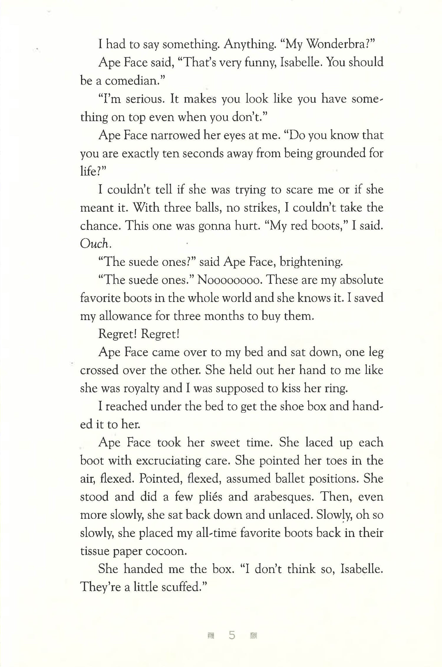 For 13-year-old Isabelle Lee, whose father has recently died, everything's normal on the outside. Isabelle describes the scene at school with bemused accuracy--the self-important (but really not bad) English teacher, the boy that is constantly fixated on Ashley Barnum, the prettiest girl in class, and the dynamics of the lunchroom, where tables are turf in a all-eyes-open awareness of everybody's relative social position.